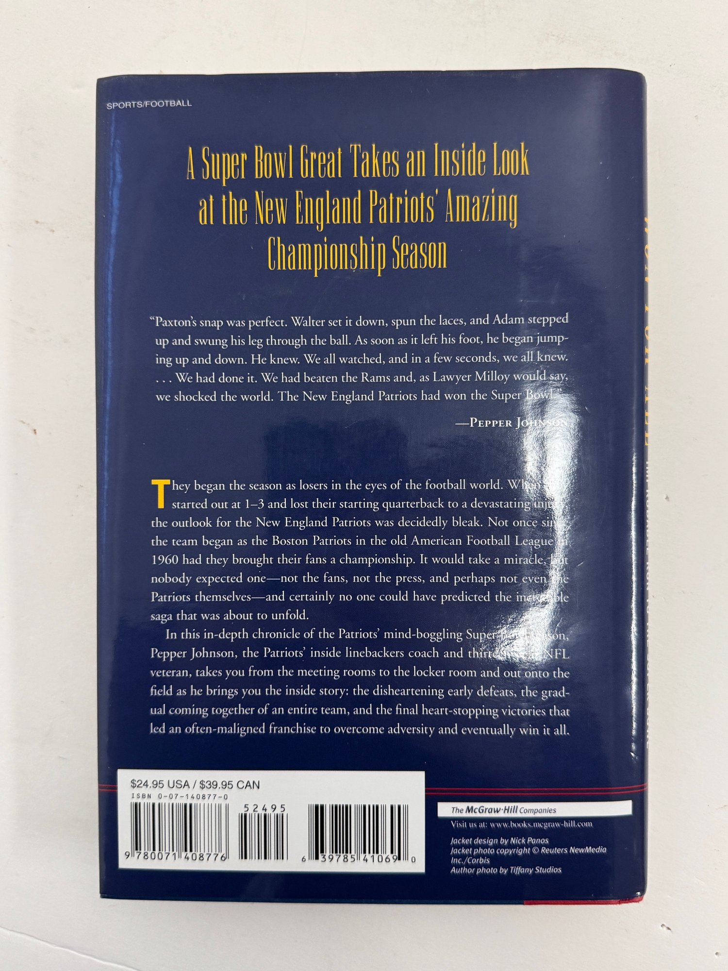 Book is signed by Pro Football HOF Kicker Adam Vinatieri on the front cover of the book. The signature was signed in gold sharpie and is slightly smudged as seen by the photos. The book is overall in excellent condition.