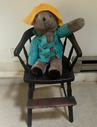 Antique Child's High Chair with Padding Bear