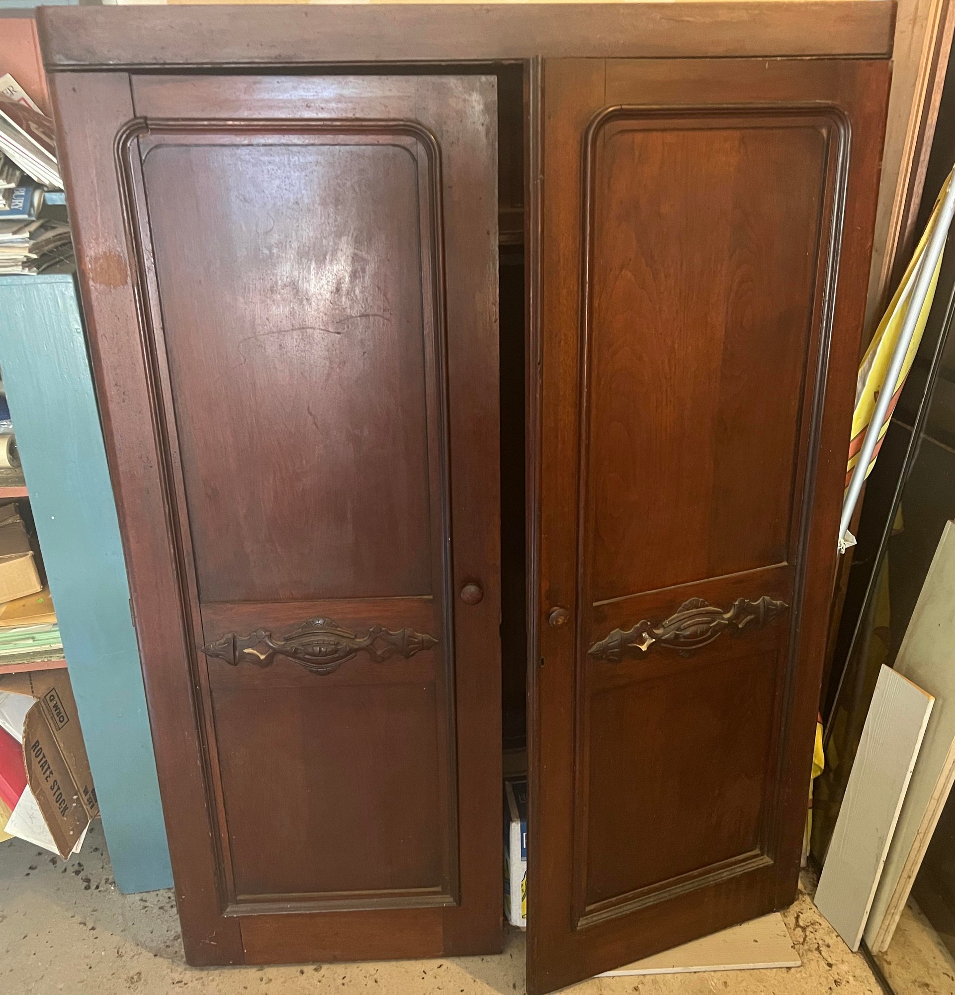 Or possibly just the top to an armoire. Probably just a good piece to put into your garage or basement and load up with storage items. 66" tall, 48" wide and 16" deep.