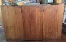 Very primitive and old. 46.5" long, 31" tall and 18" deep. The back has been repaired with more contemporary wood. Some dings and chips in the wood gives it even more of that primitive and rustic look.