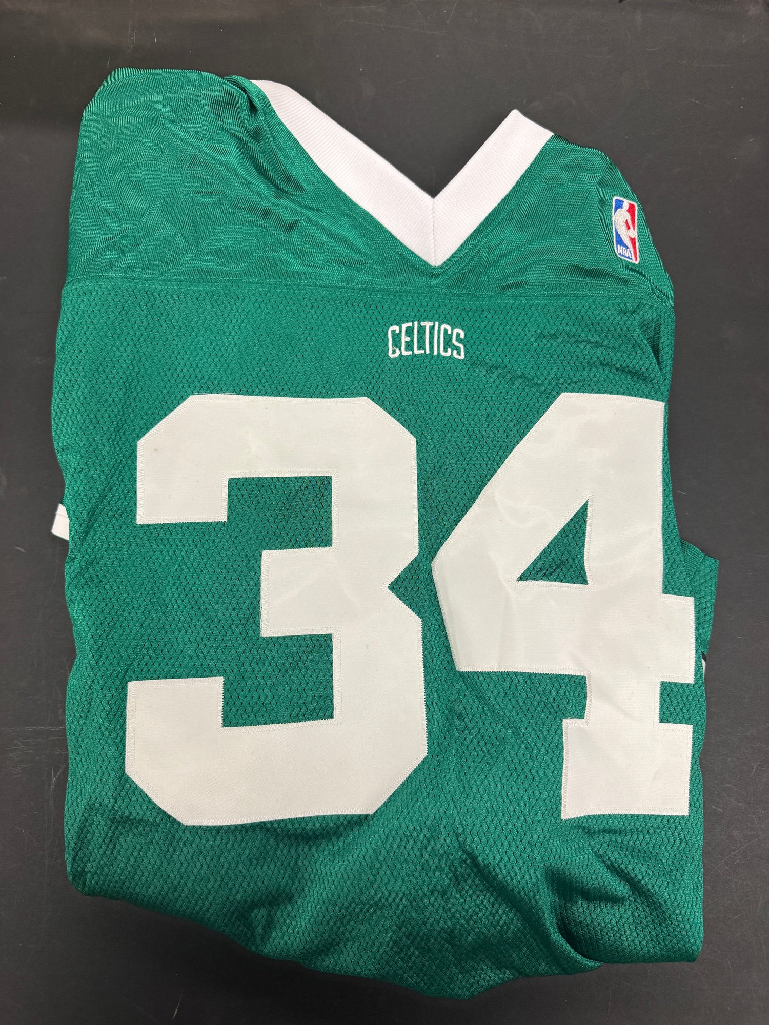 Item is a used Paul Pierce football style celtics jersey made by Reebok in a size large. Jersey is used but is in overall nice condition.