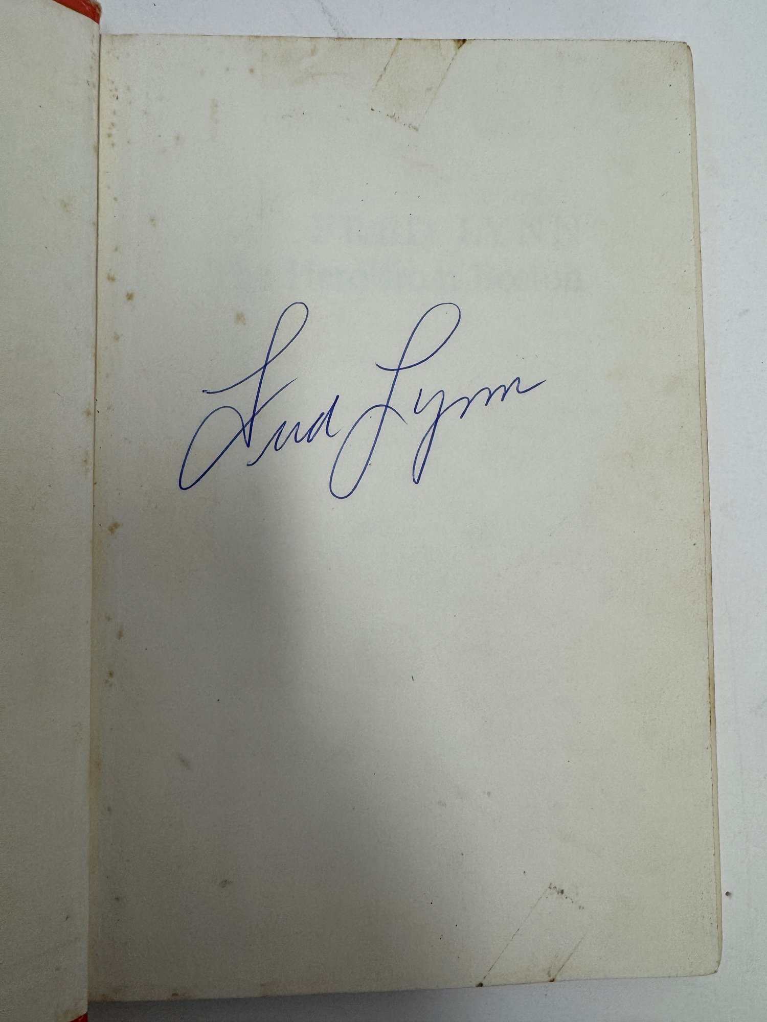 The book is in overall good condition with some foxing as well as some rips that have been repaired with tape. The signature is on the inside first page of the book in bold pen ink as seen.