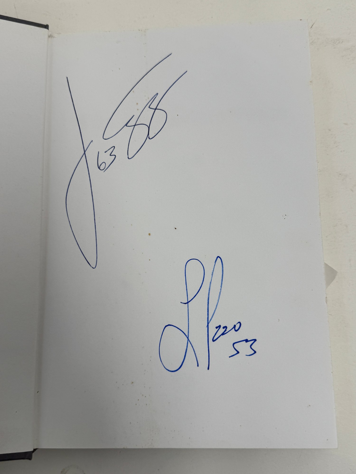 Book is signed by Super Bowl Champs Larry Izzo and Joe Andruzzi. The book is in excellent condition but does have a slight mildew smell. The book comes with the ticket where this book was signed, a 2003 Red Sox and Patriots alumni dinner.