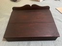 16.5" wide, 13" deep, 3" tall. Lid opens and closes fine. No major wear of note