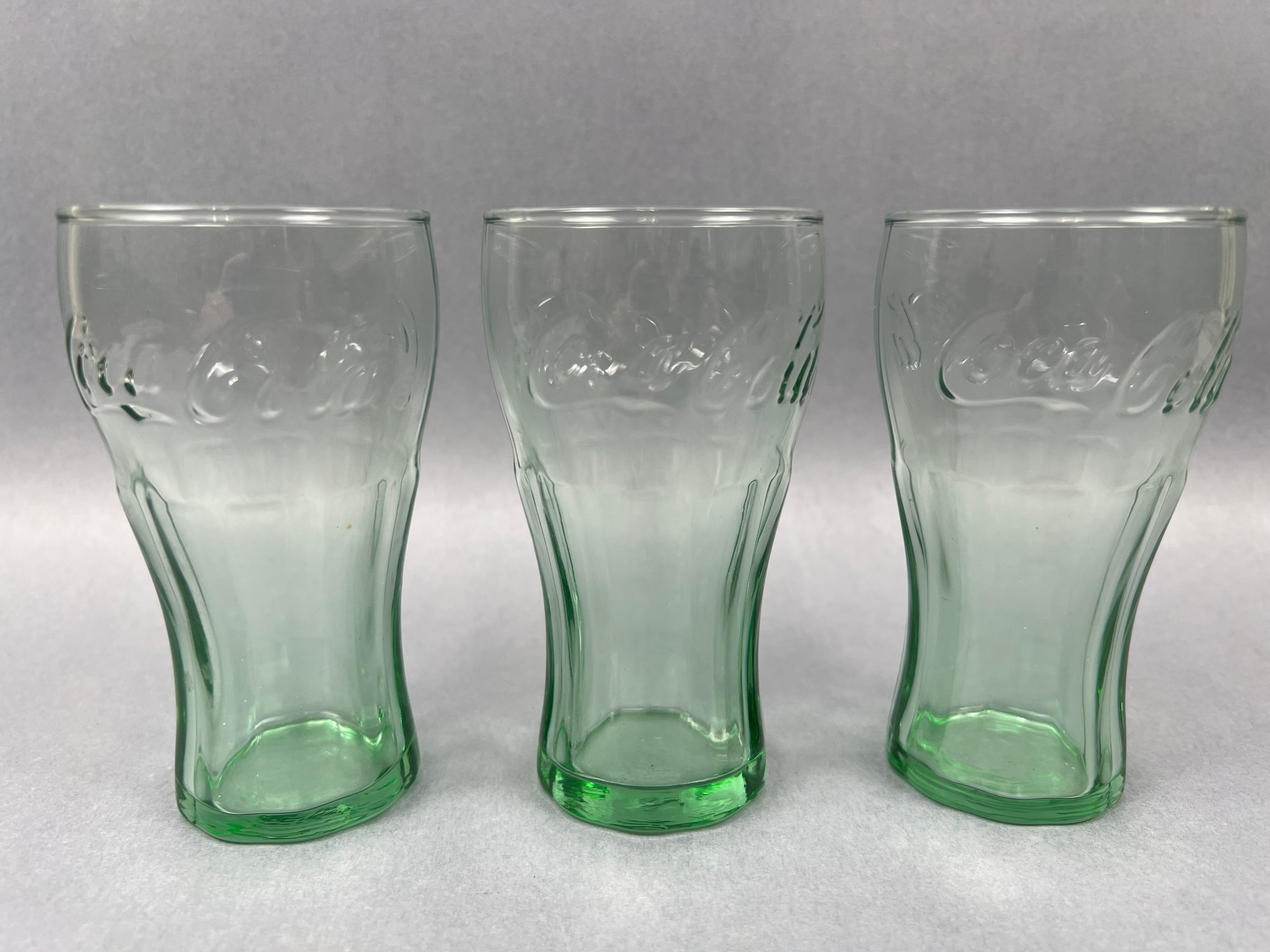 3 Vintage 4.5 Inch Coca-cola Green Glasses.