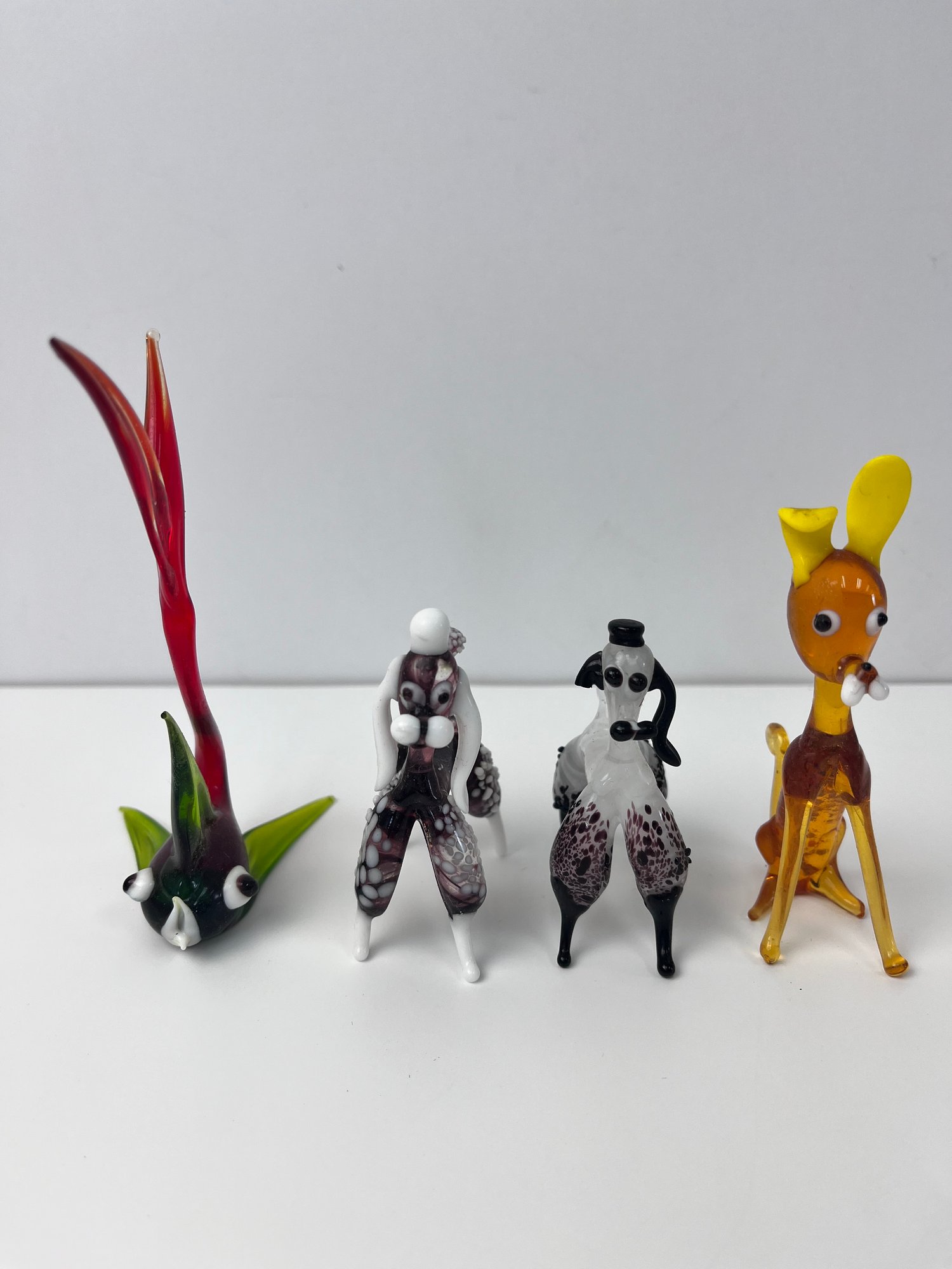 Preowned. Black and white poodle dog has a chipped ear.