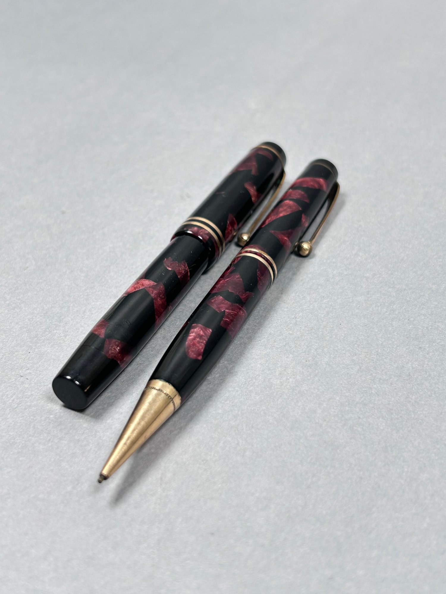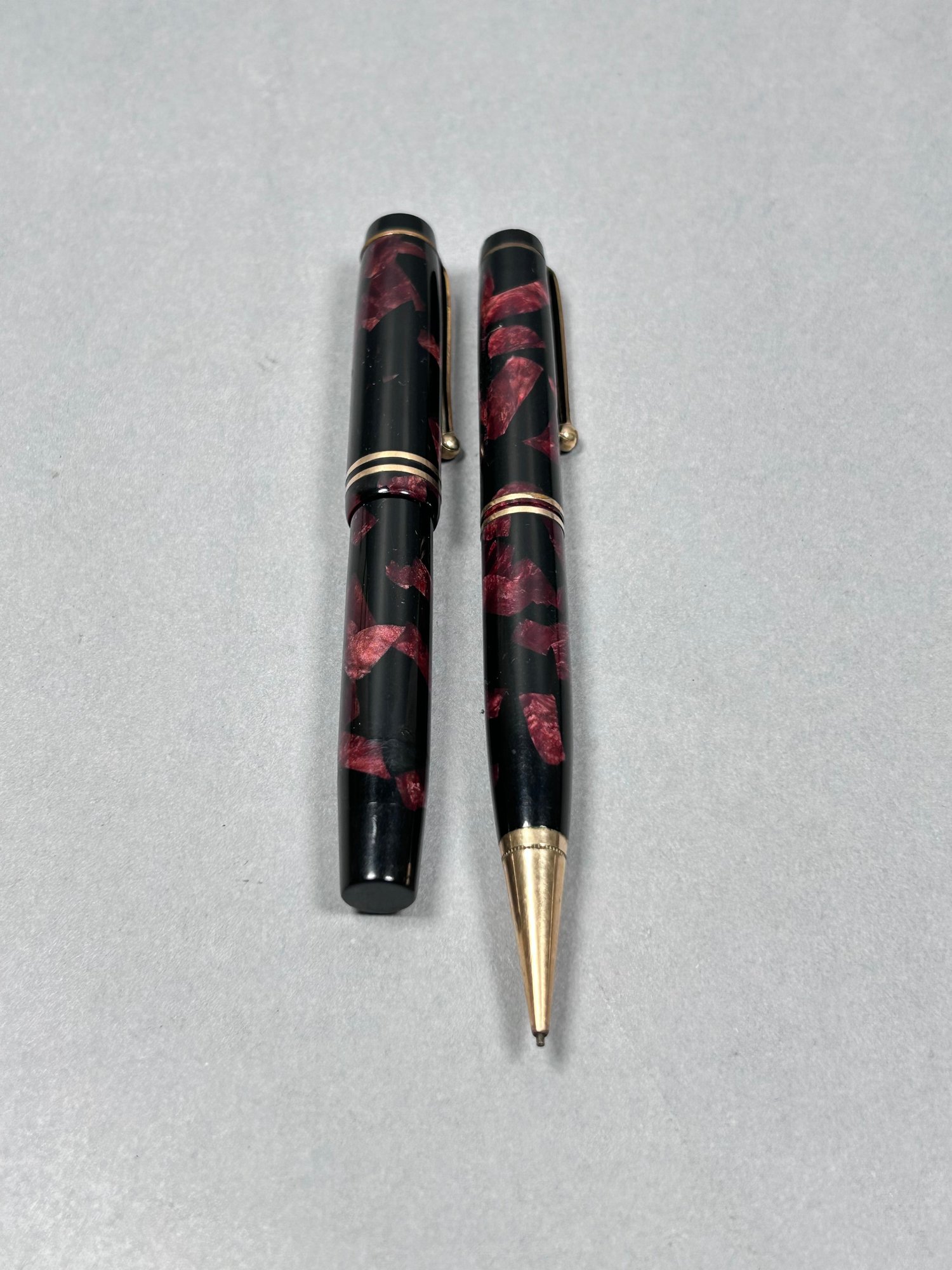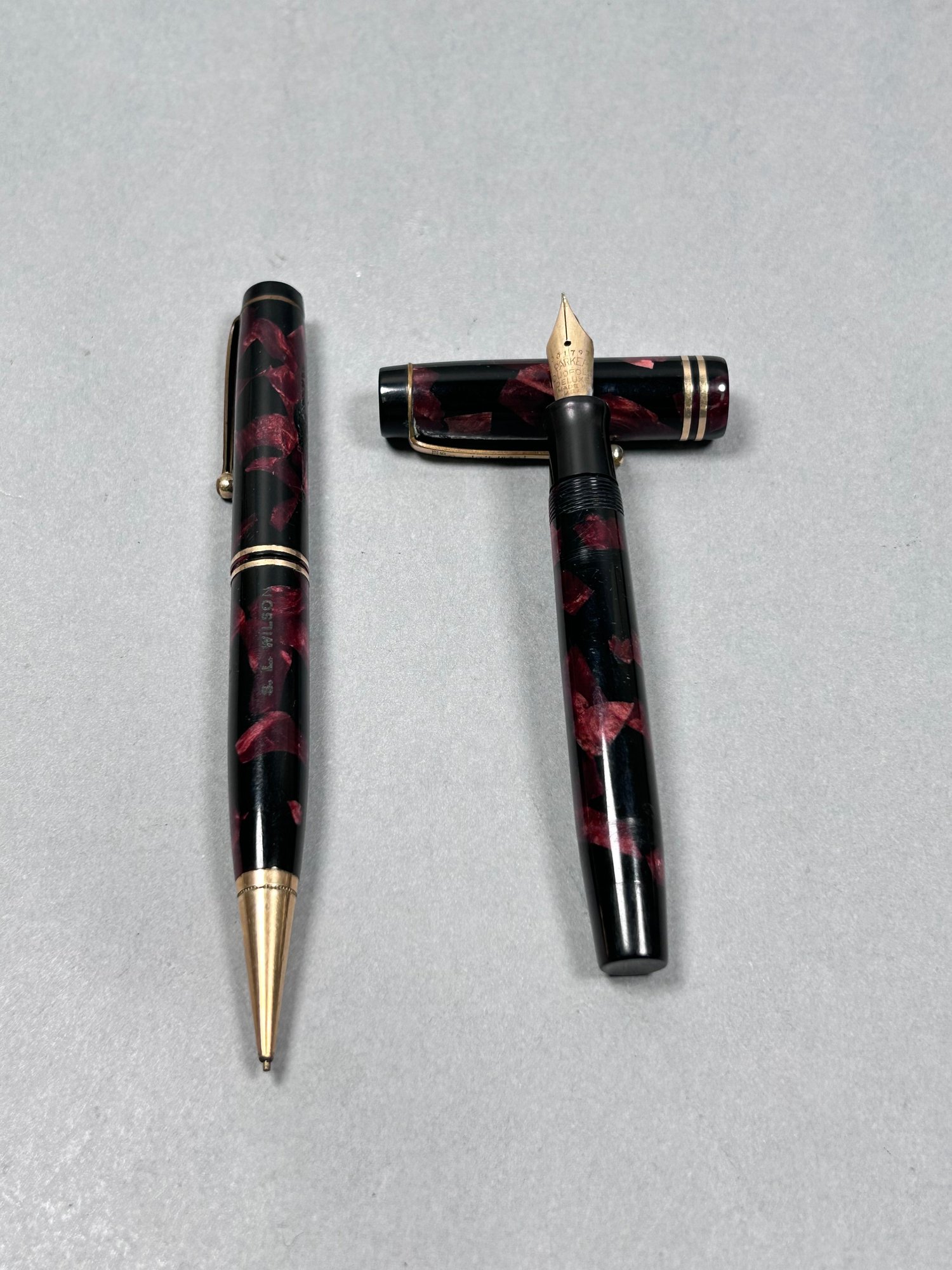 Parker Duofold Fountain Pen And Pencil Set Features A "marbled Burgundy"