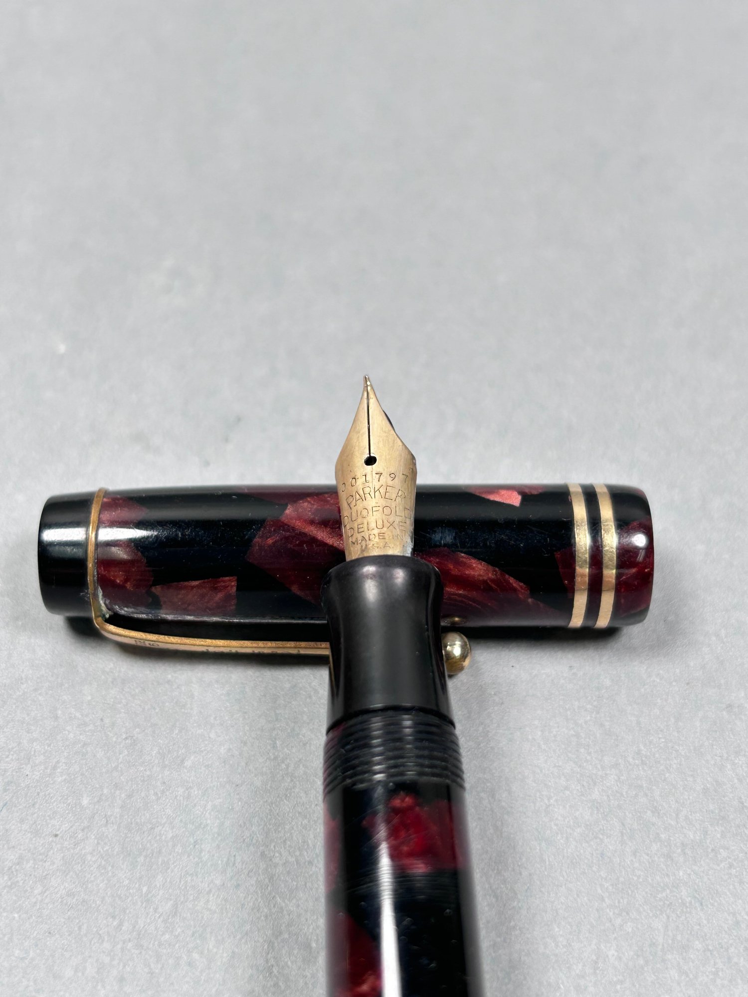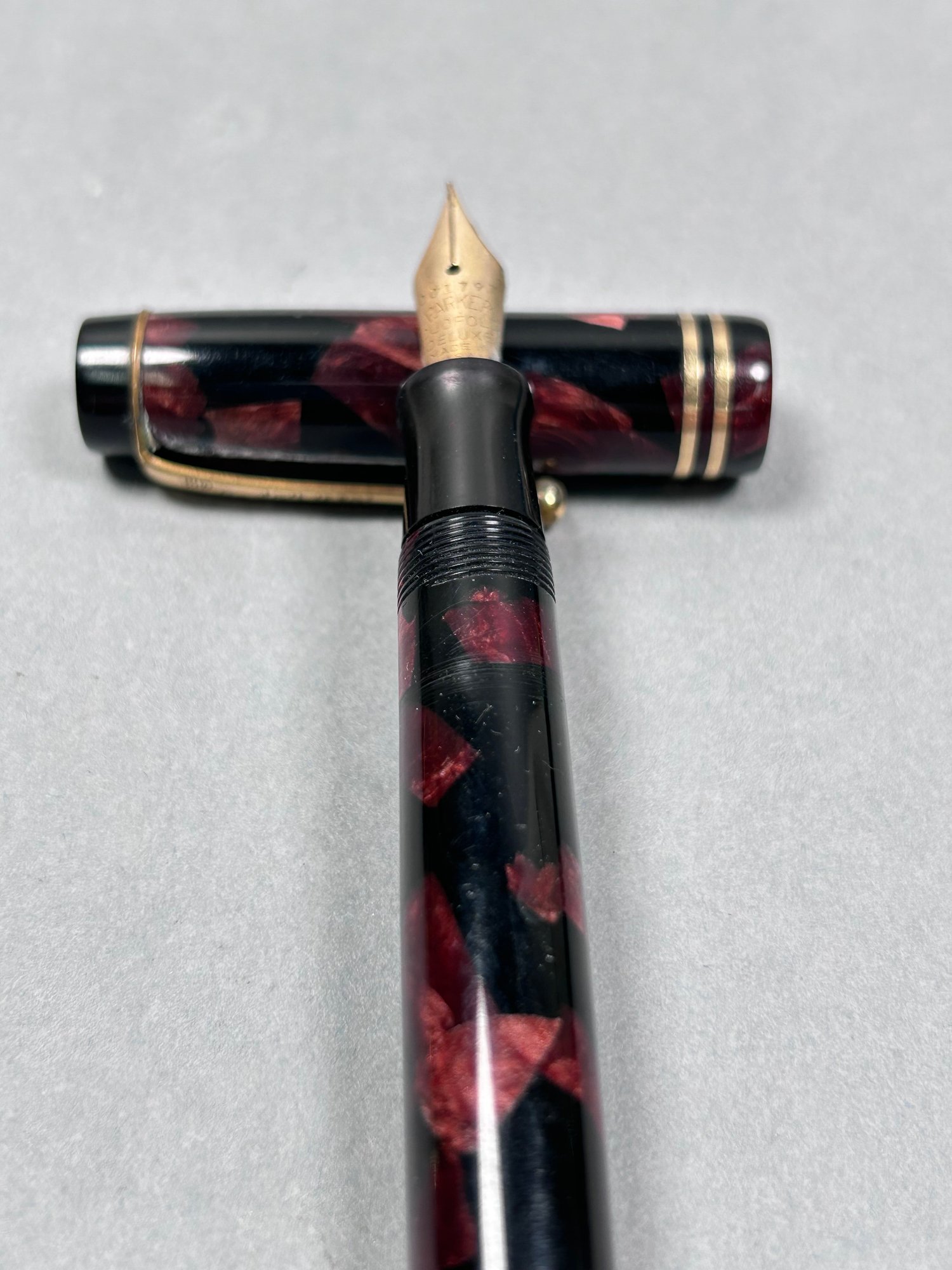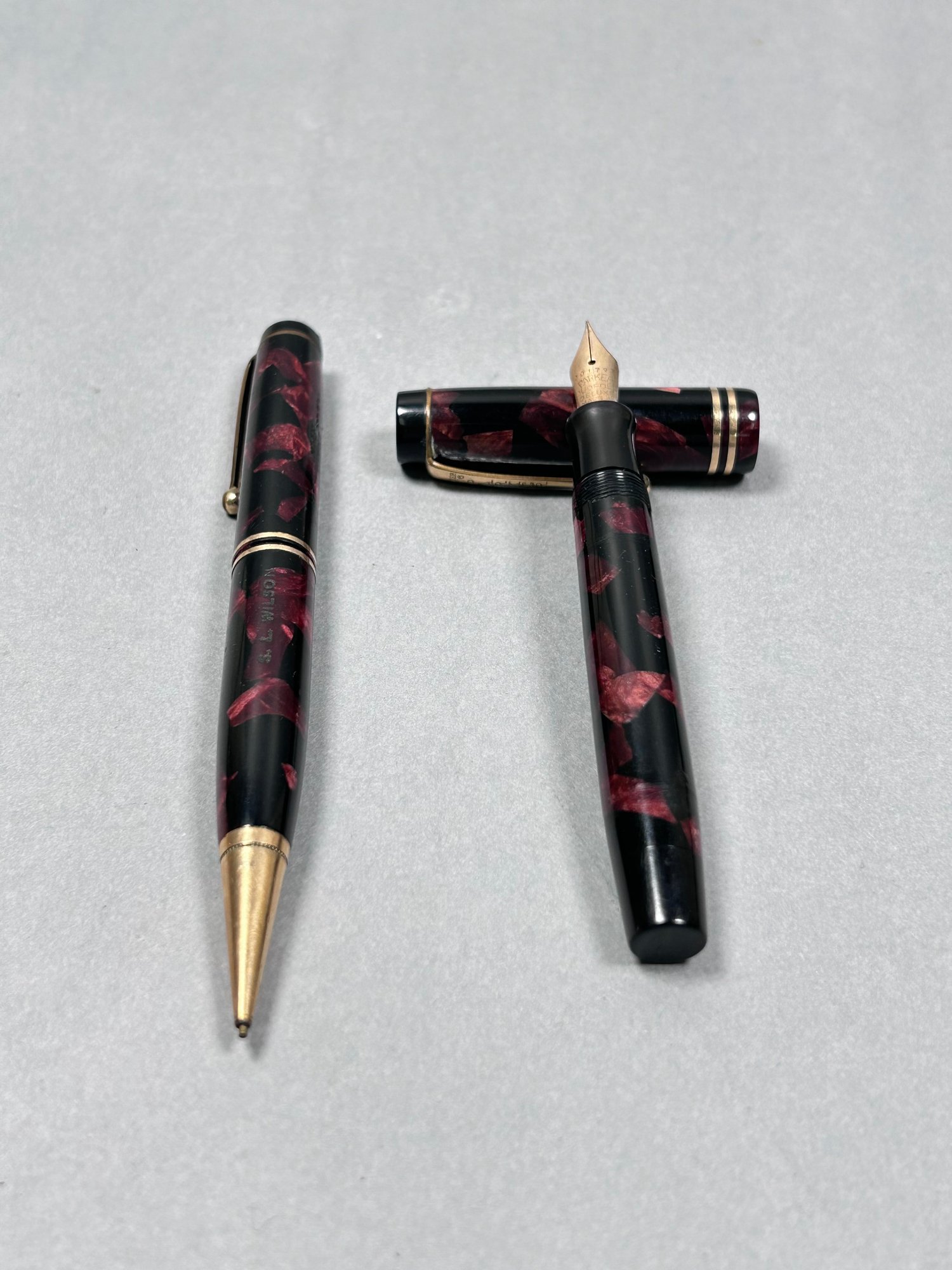Parker Duofold Fountain Pen And Pencil Set Features A "marbled Burgundy"