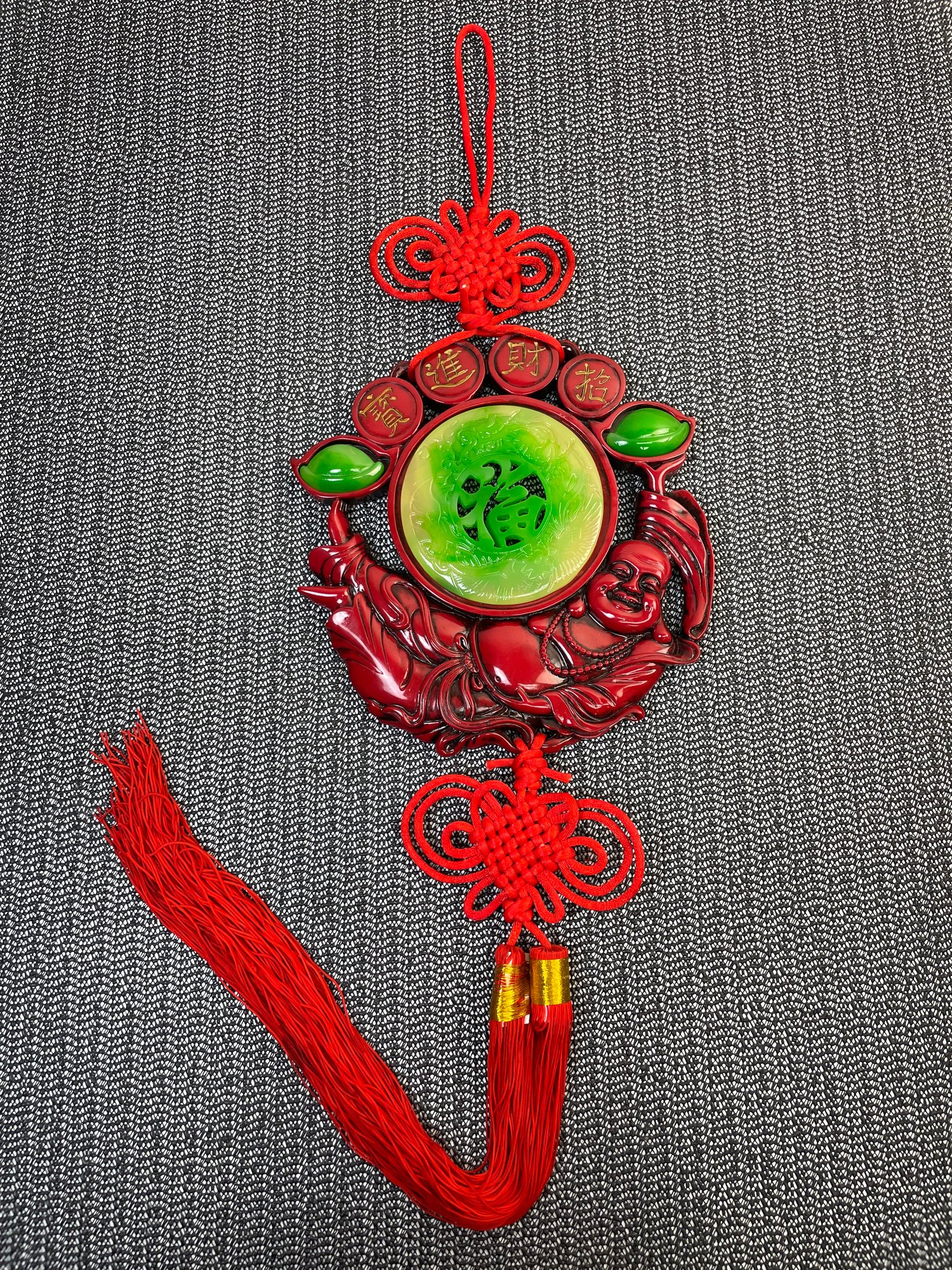 Preowned. Nice heavy piece. Some staining in tassle. Pictured.