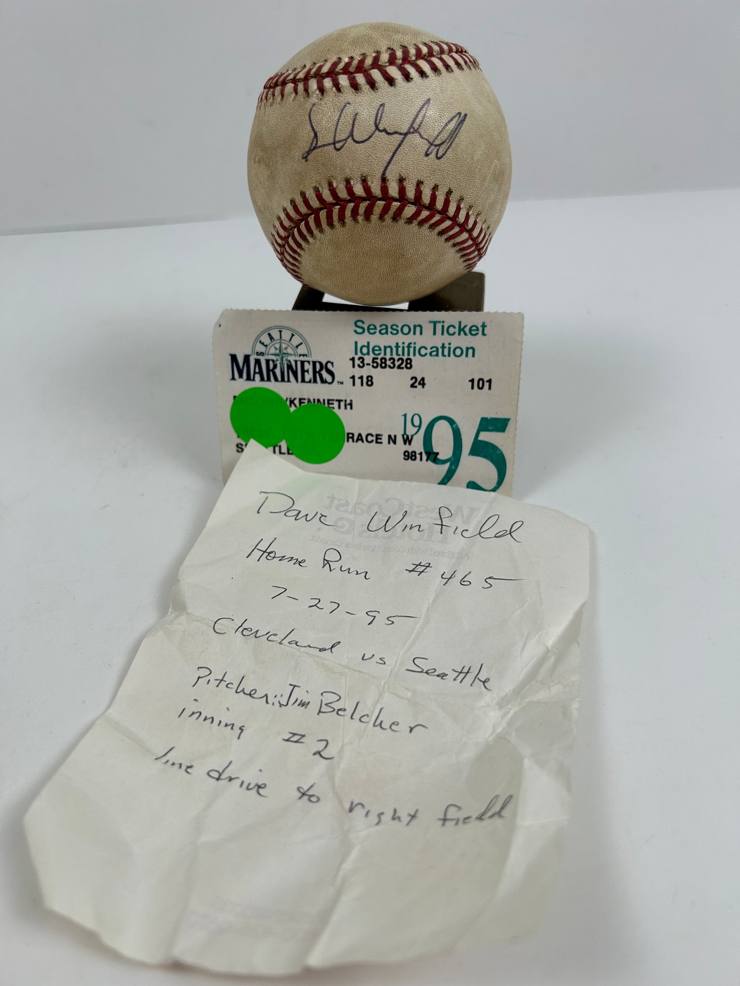 Dave Winfield Autographed Baseball HR # 465 Dated 7/27/95.