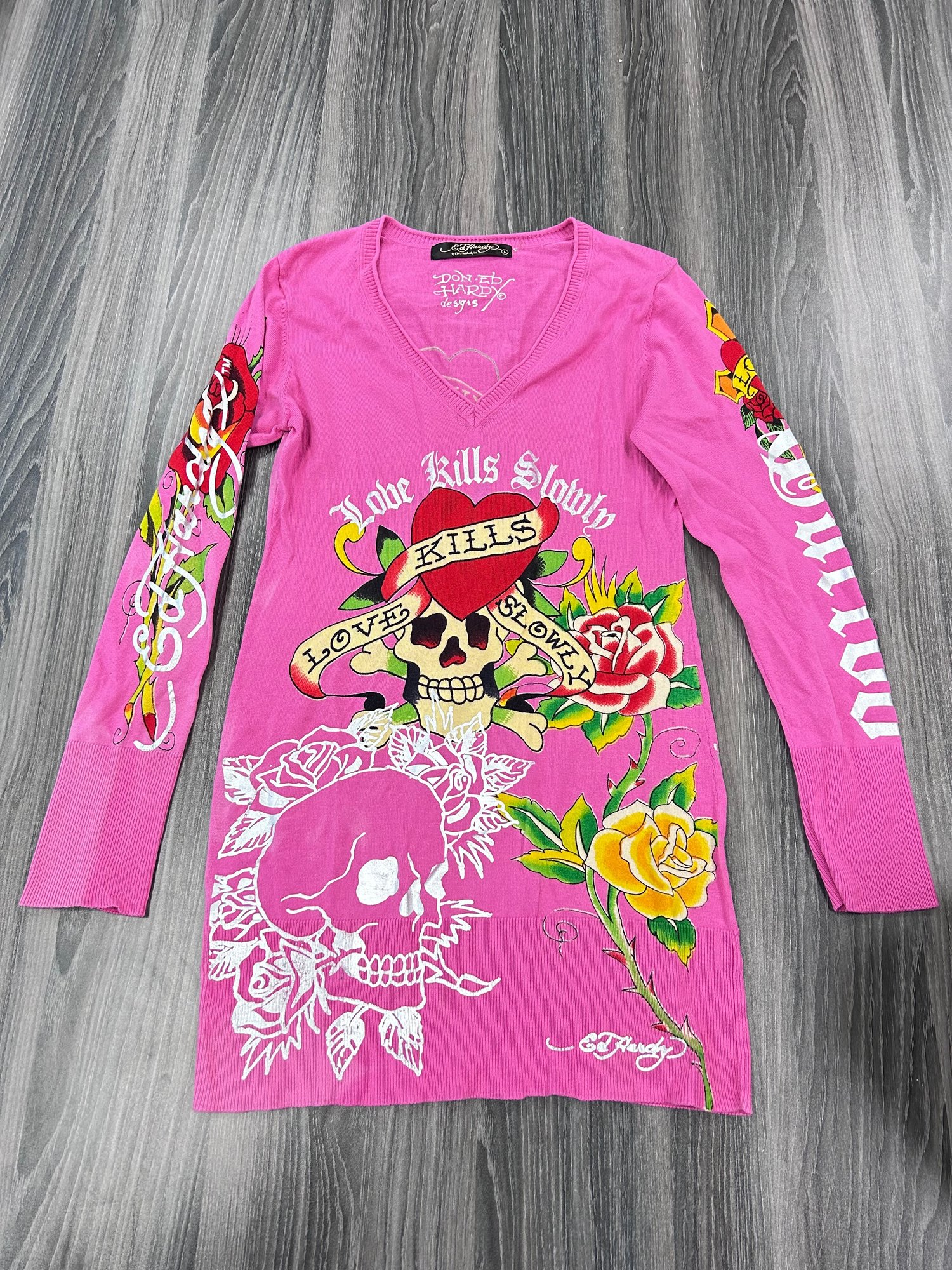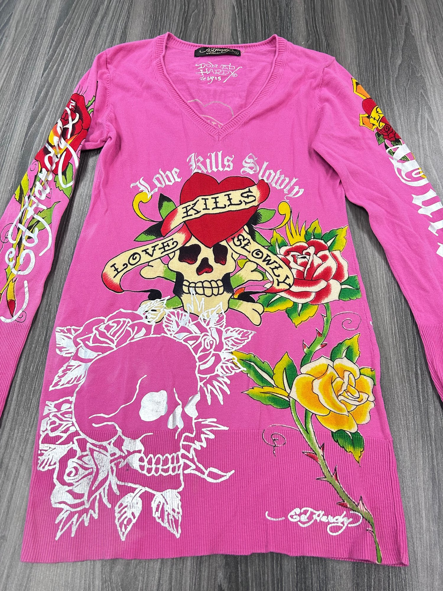Ed Hardy by Christian Audigier long-sleeve "love kills slowly" tattoo graphic