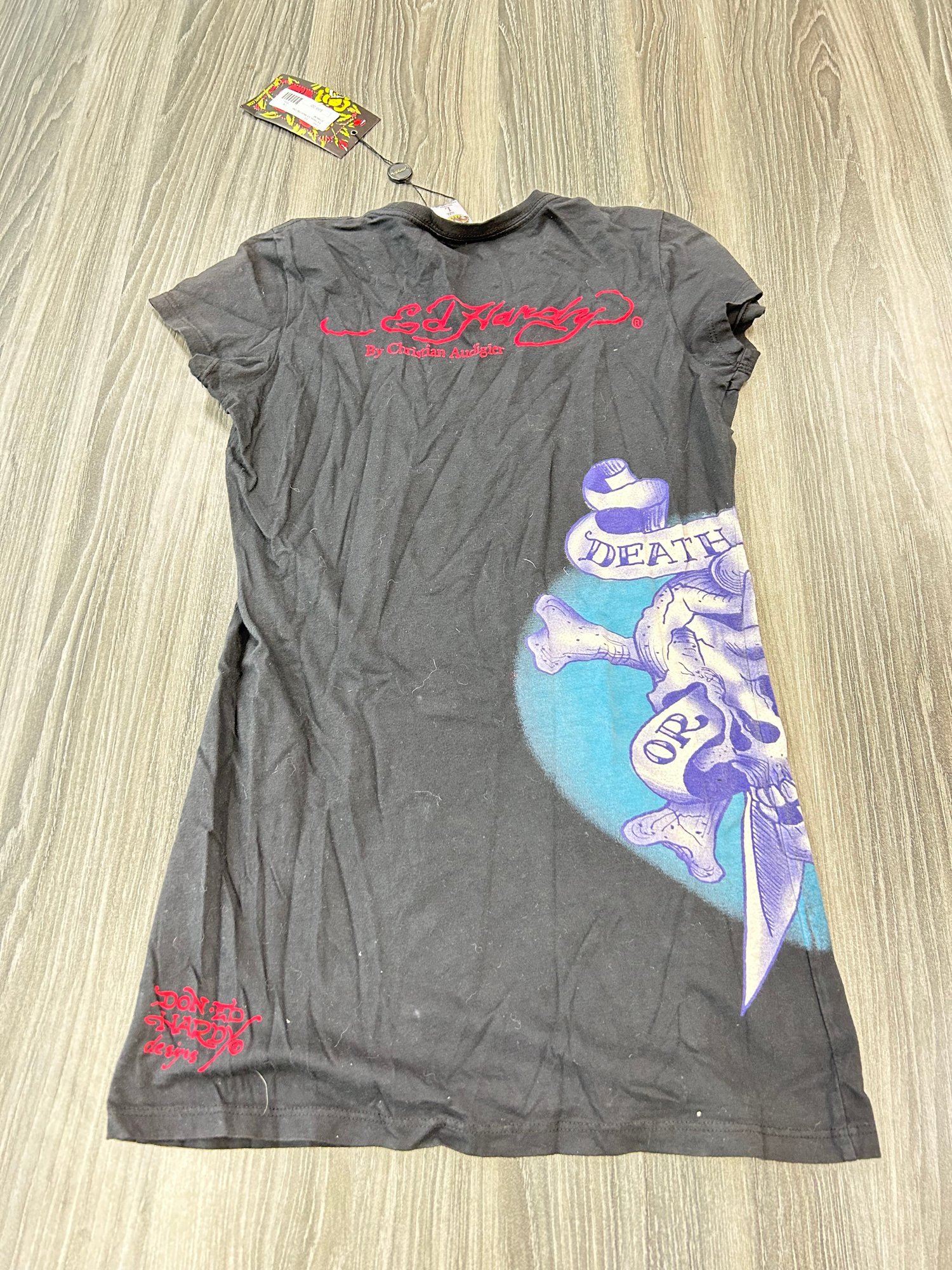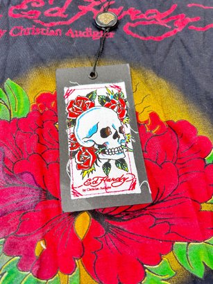 Ed Hardy by Christian Audigier graphic t-shirt or tunic dress featuring a skull and floral design