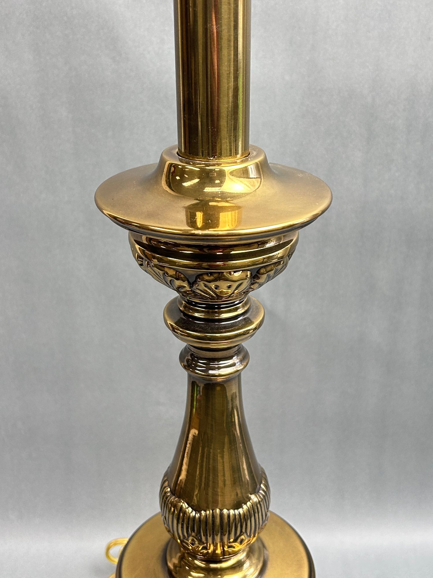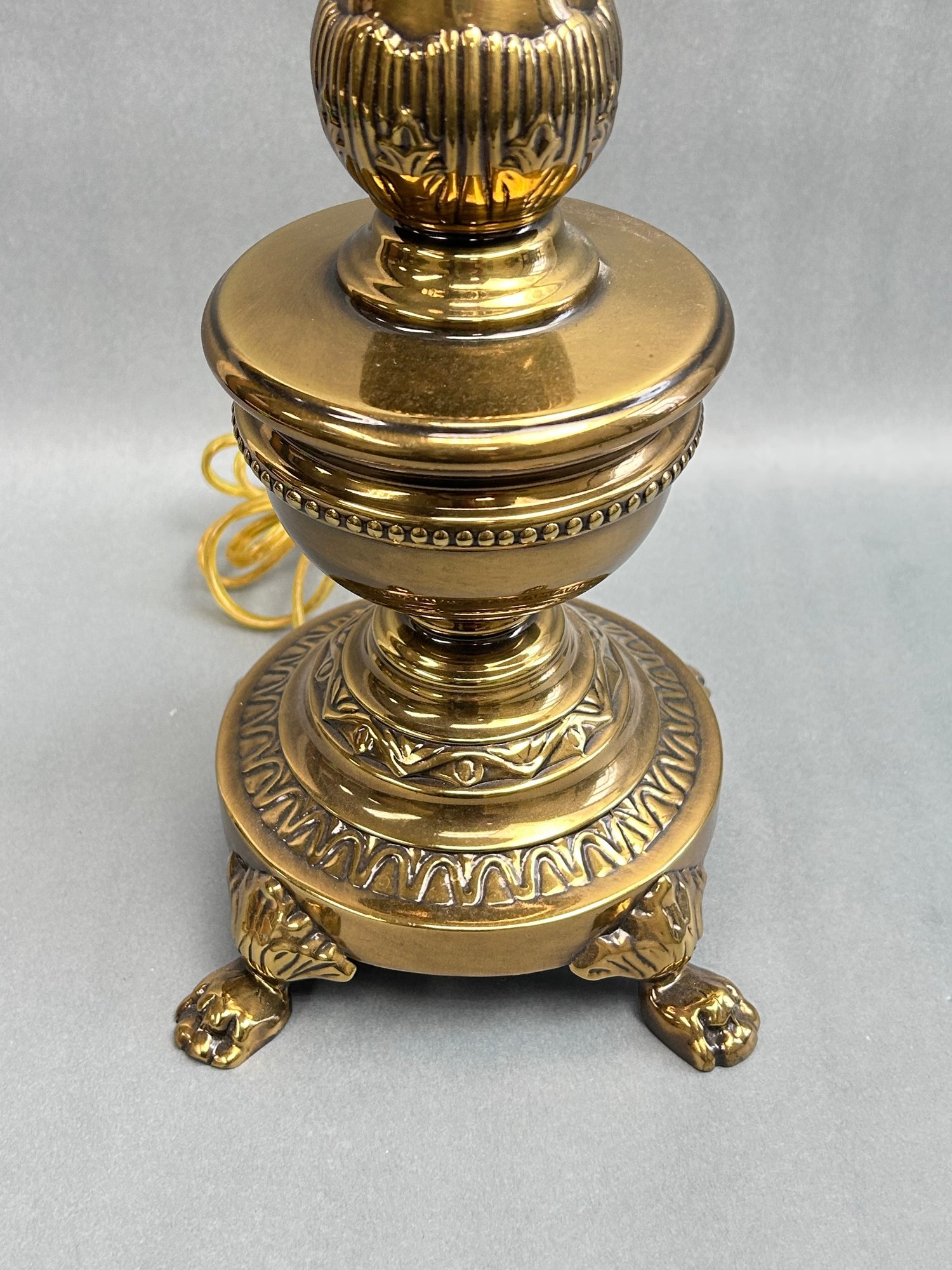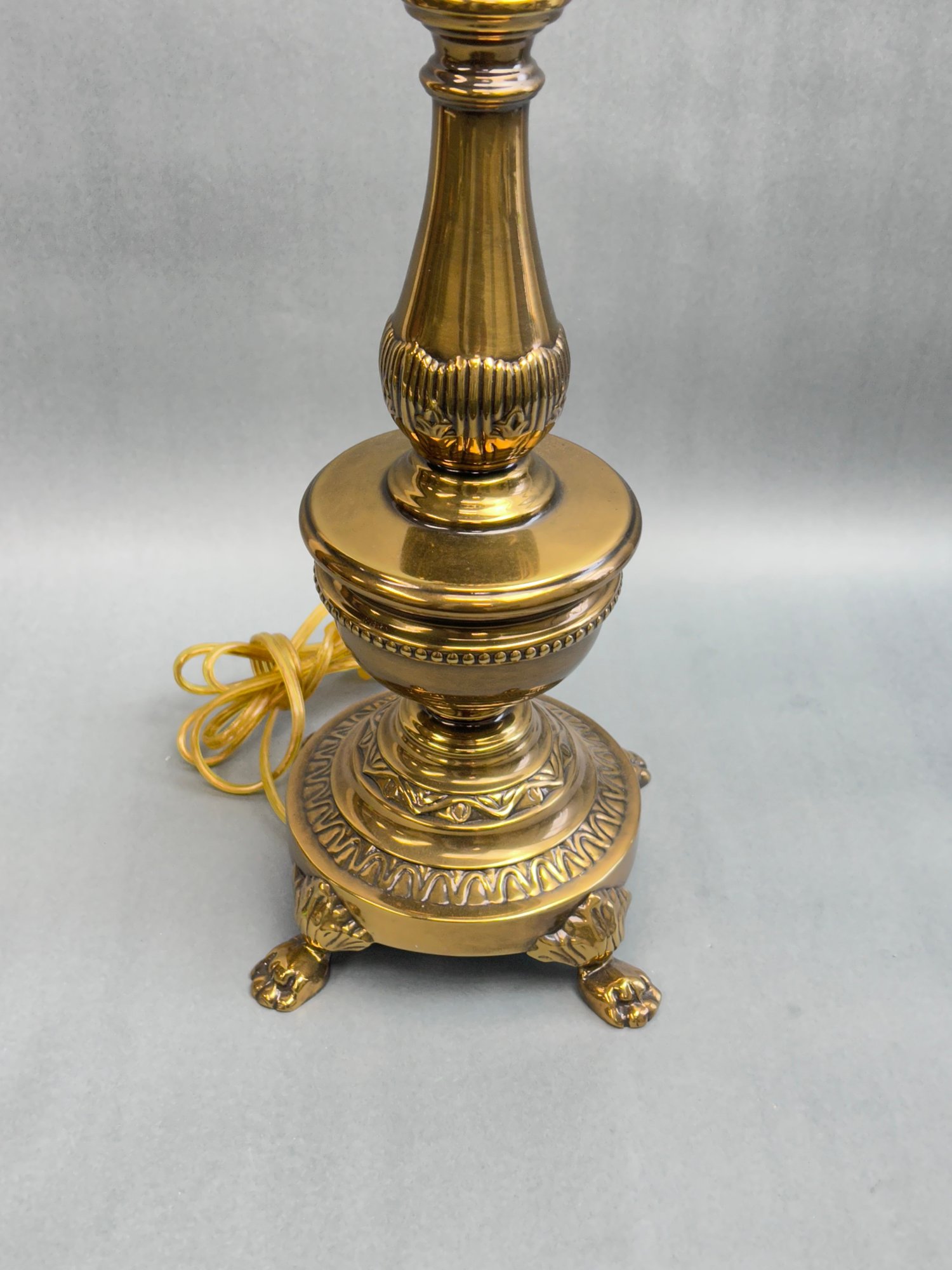 Hollywood Regency, featuring turned brass and ornate pedestal bases.