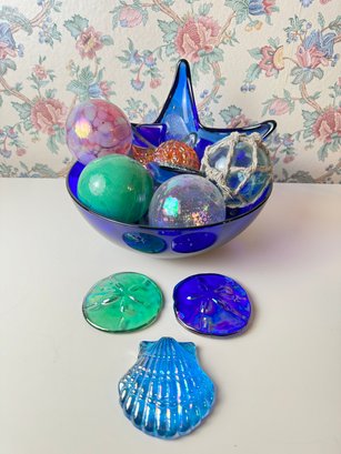 Large Bowl Of Glass Ornaments And Shells