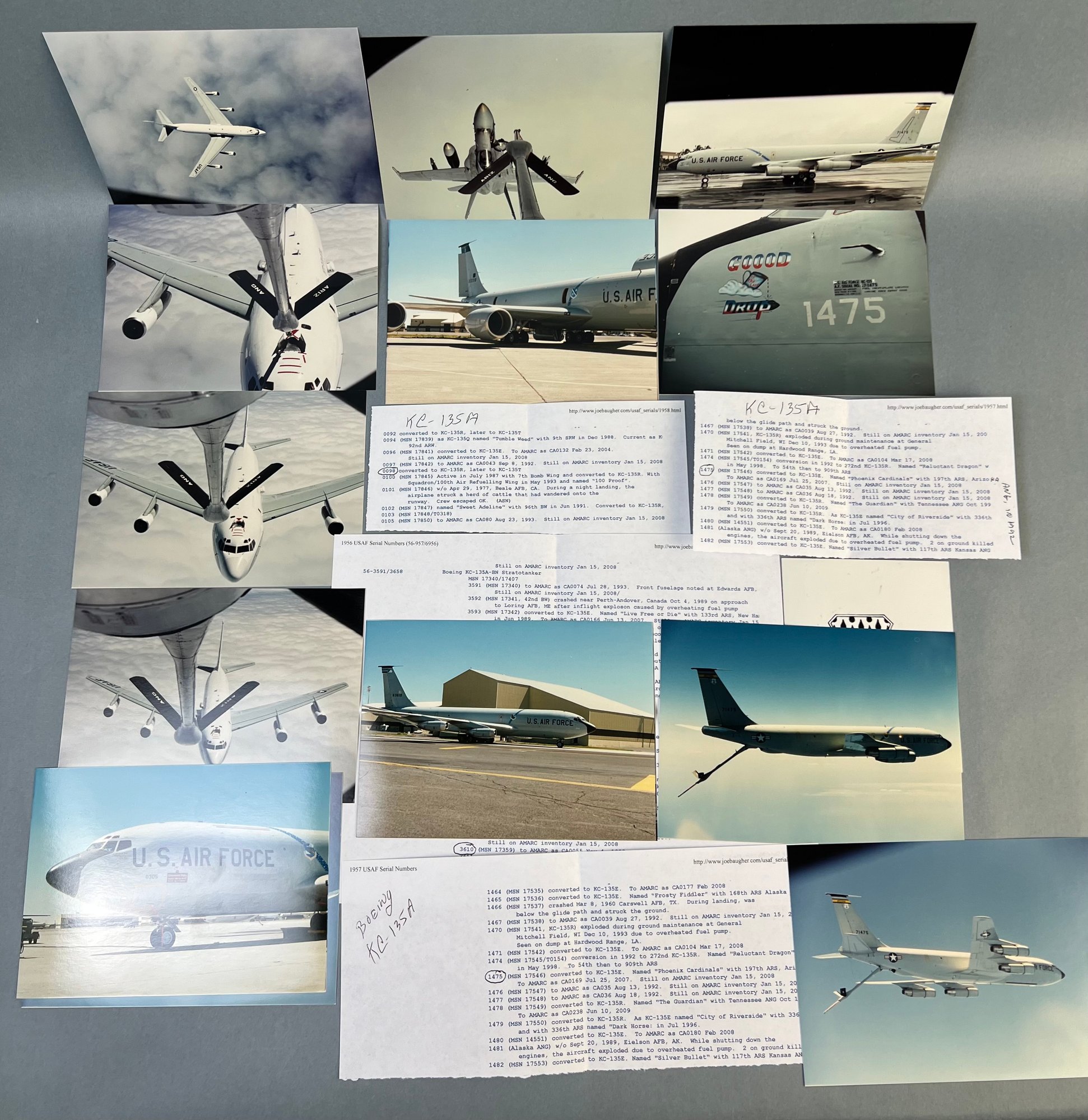 Lot Of 3x5 Photos Of KC-135 Refueling Aircraft With Info And 171st Air Refueling Wing Decal.