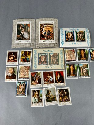 Lot Of Ajman Air Mail Stamps Adam And Eve