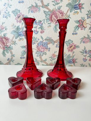 Lot Of Red Candle Holders