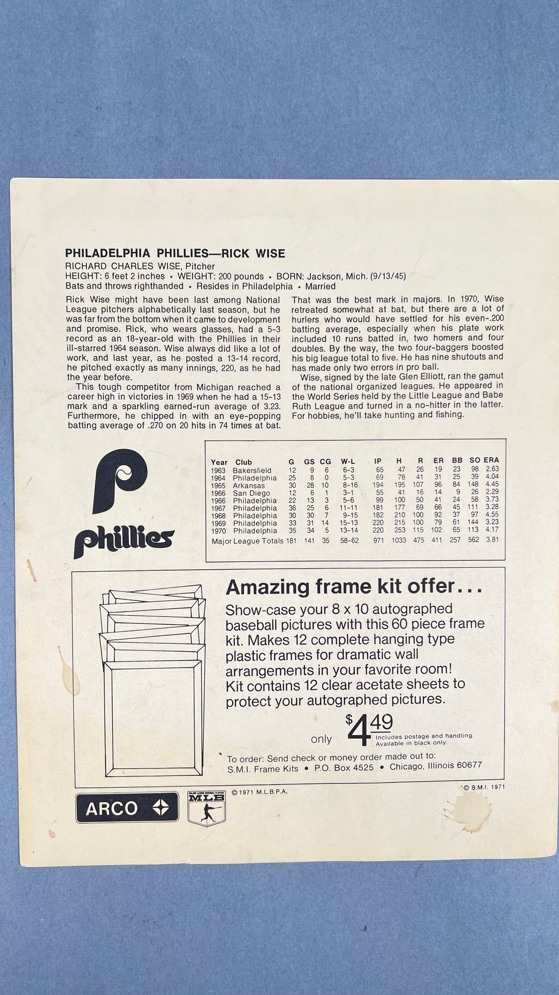 Rick Wise Philadelphia Phillies 1971 Arco Photo