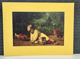 Preowned. See pictures. Not framed, but has mat on front and back. Mat is not fully attached to photo.