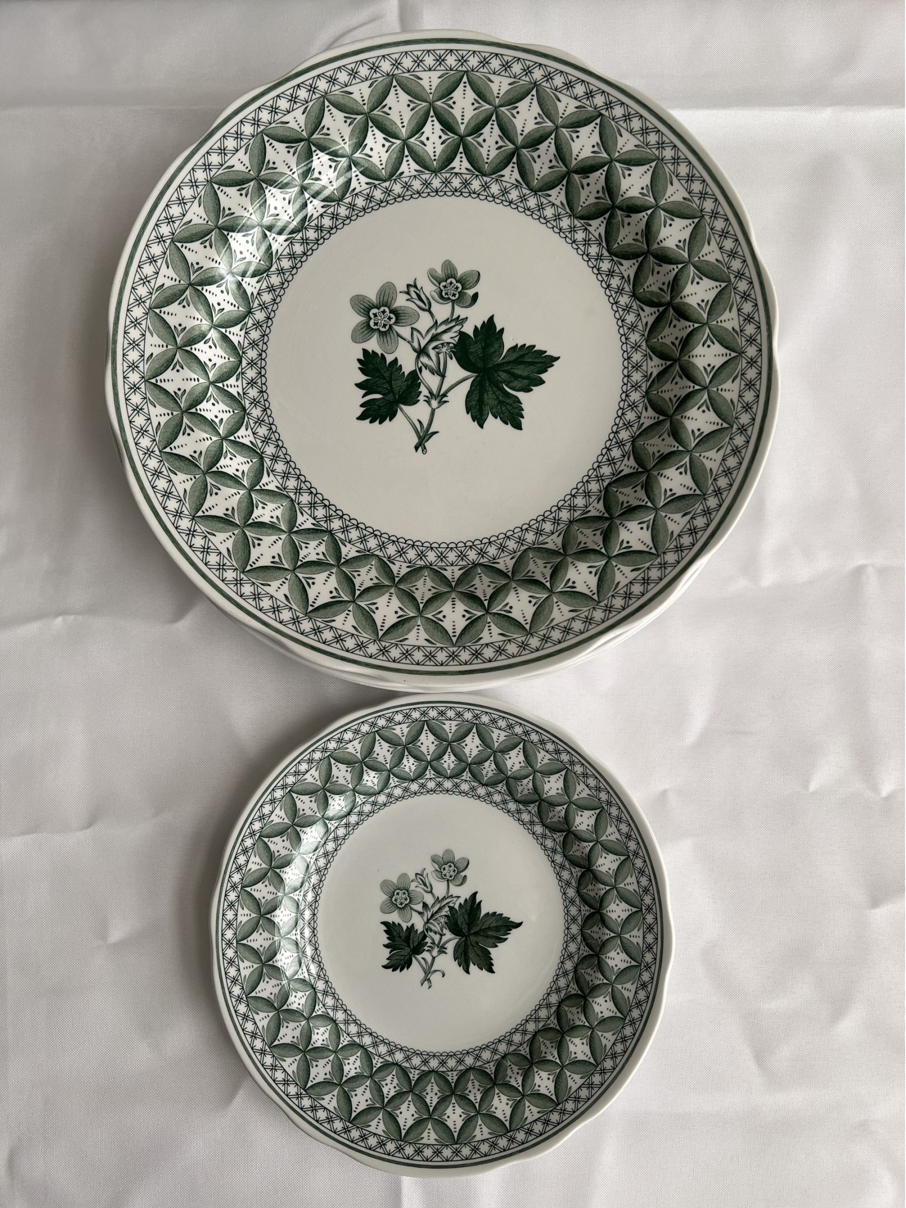 Spode Green Geranium 7 Dinner Plates And 1 Bread