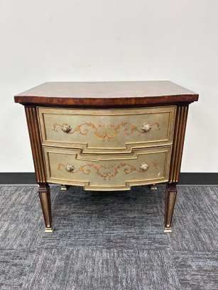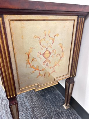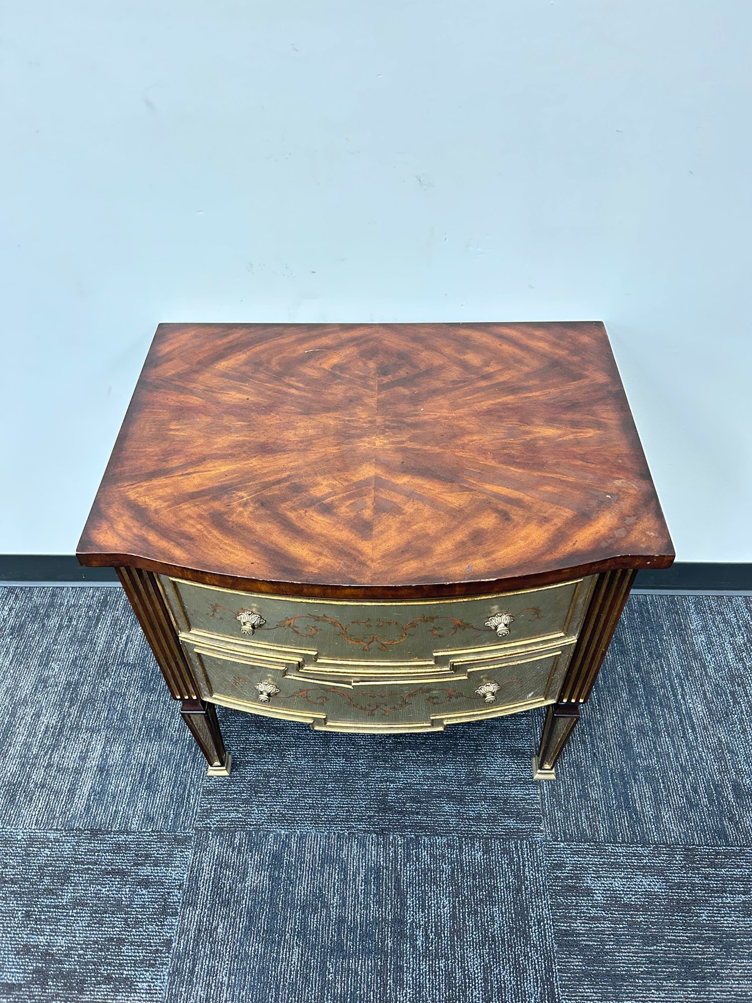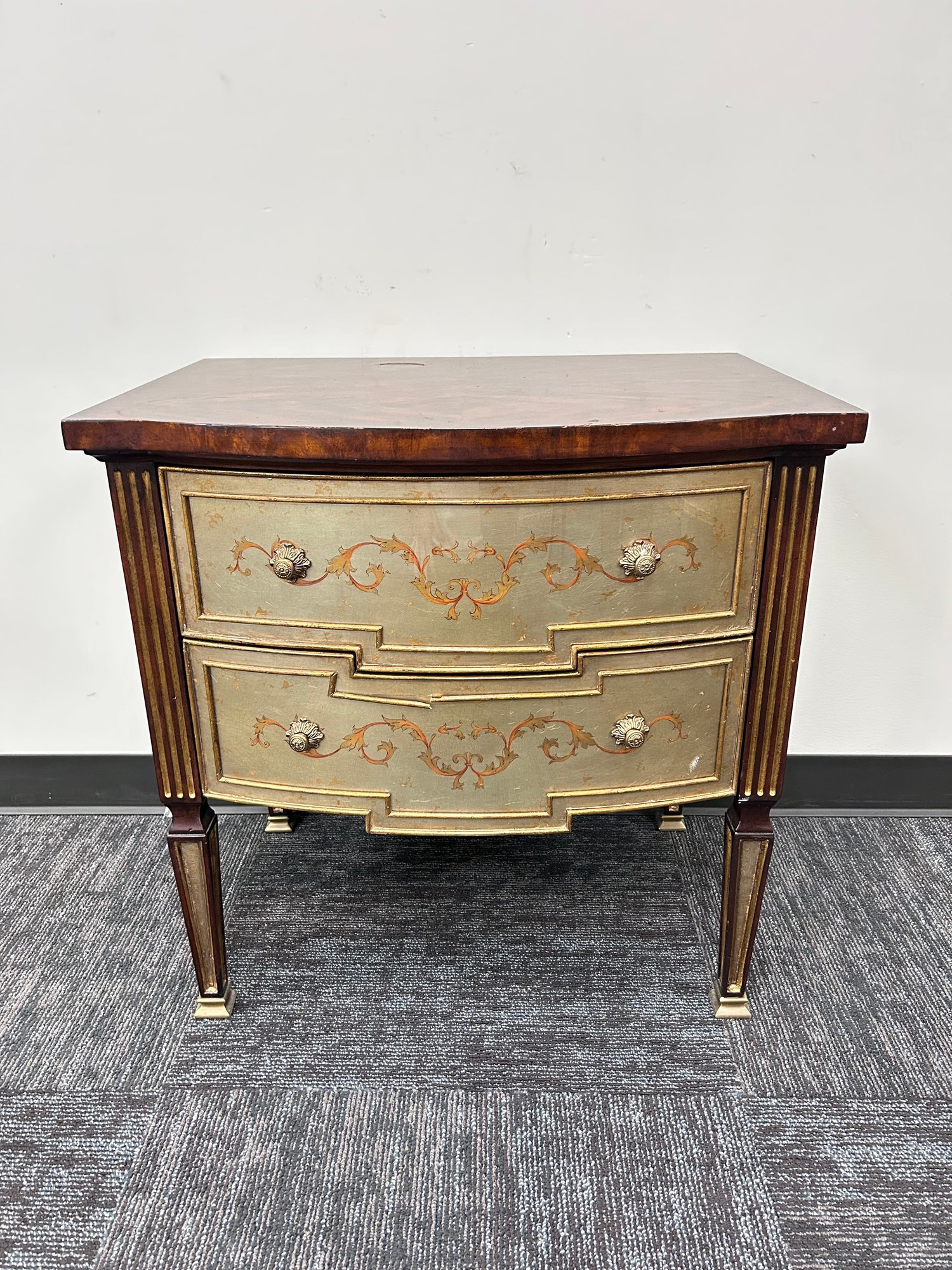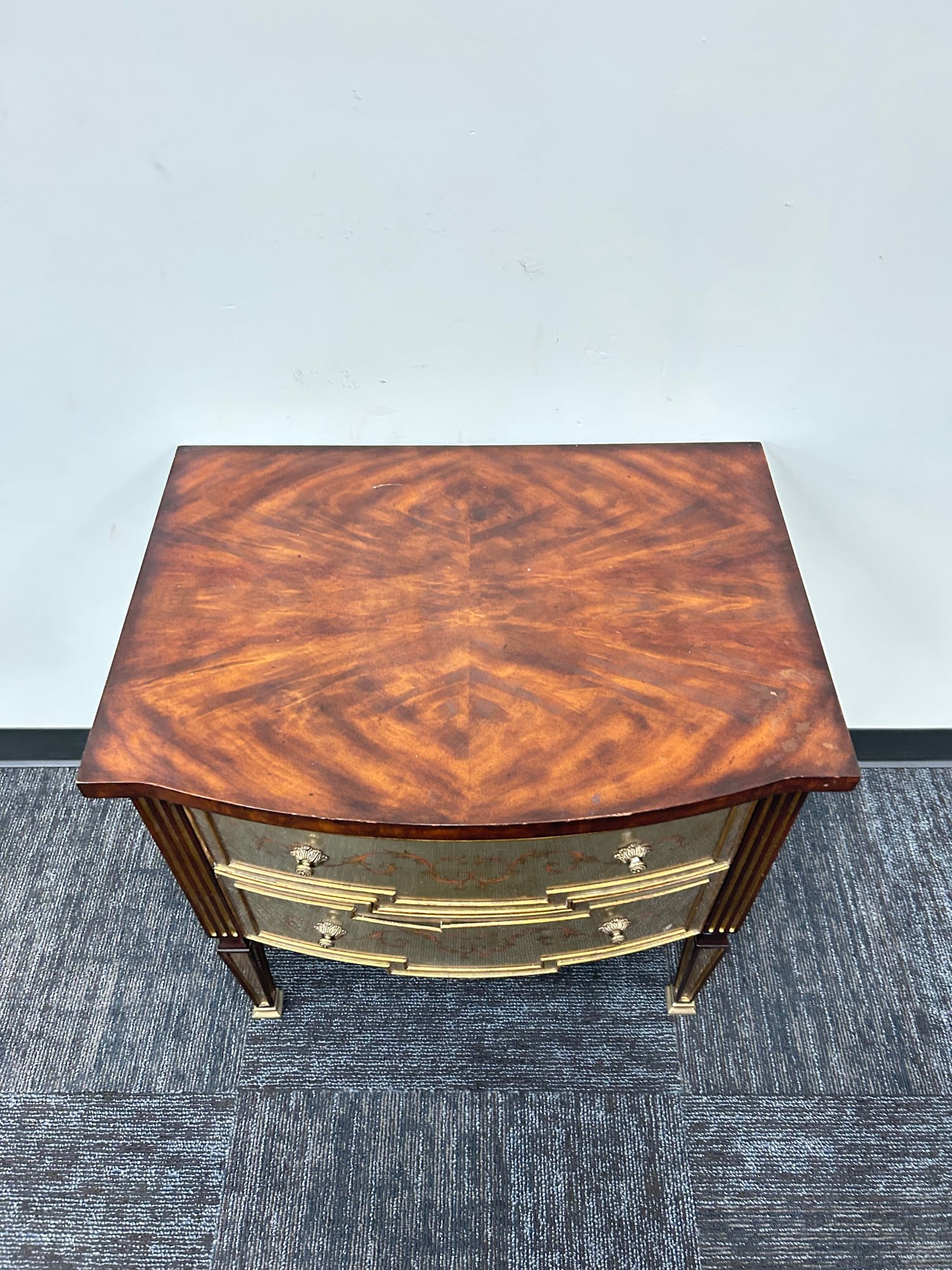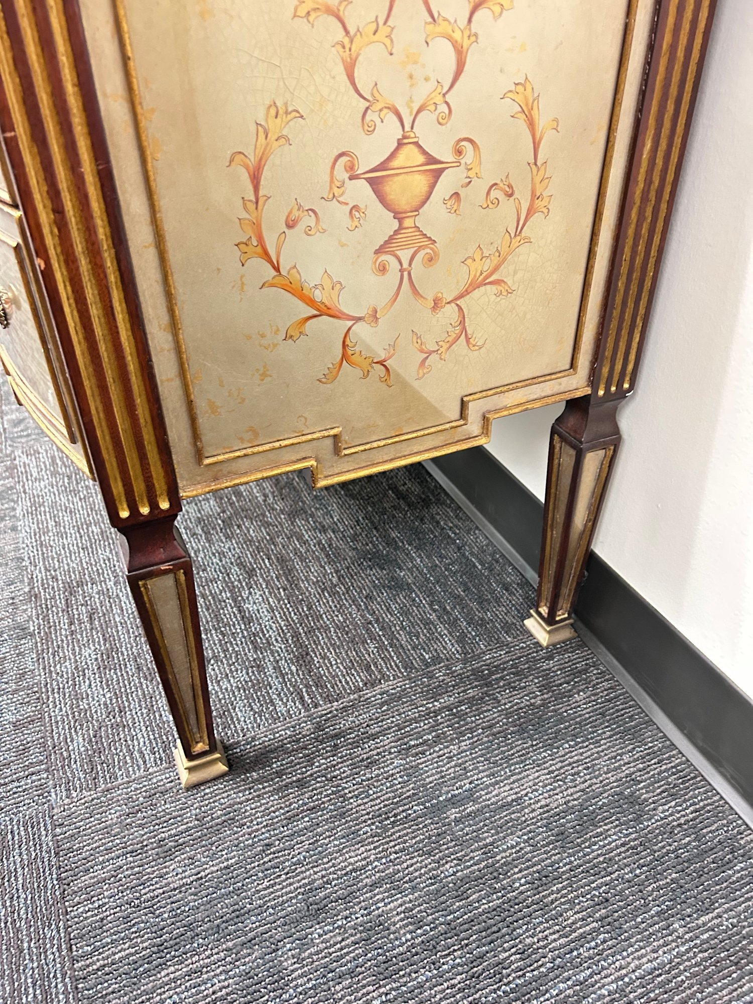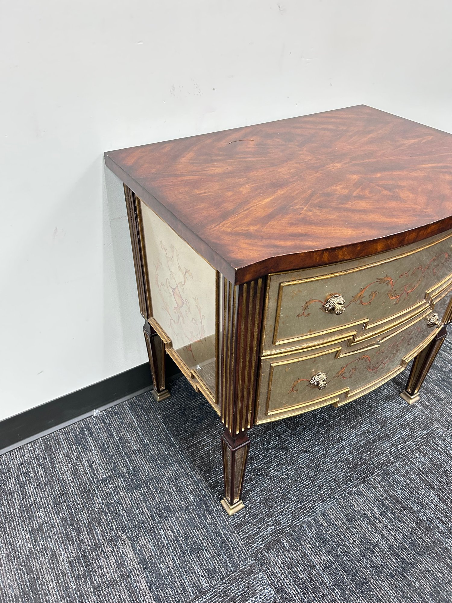 Theodore Alexander Palazzo chest of drawers, featuring verre églomisé (gilded glass) panels and fluted column details.