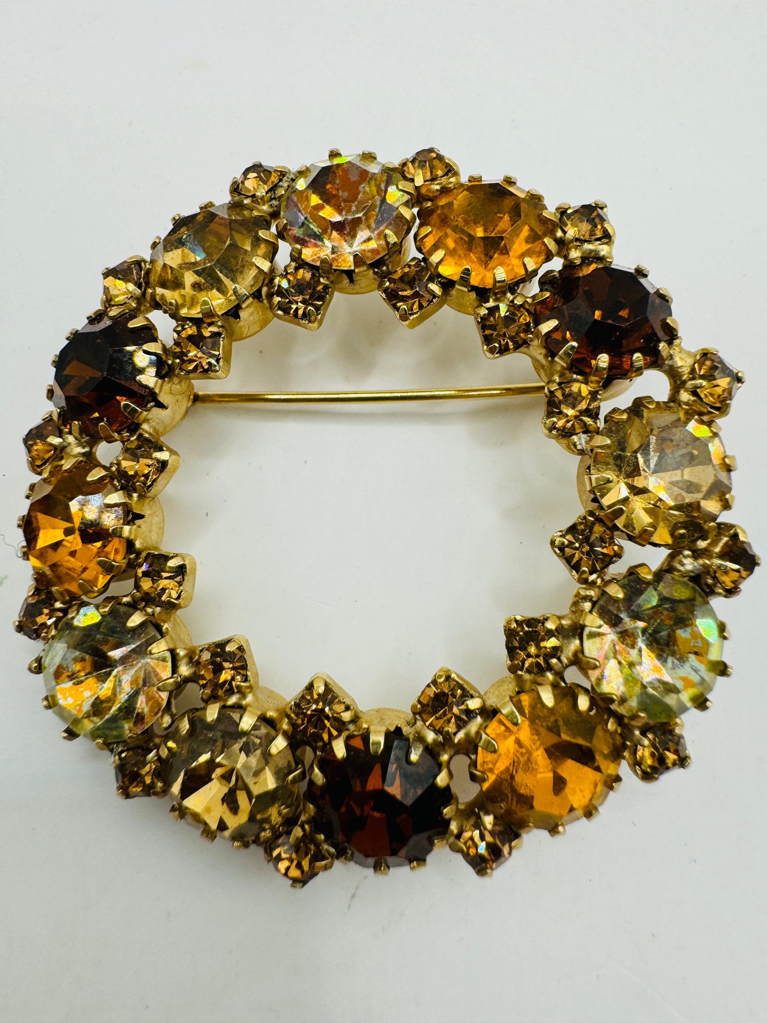 Topaz & Amber Rhinestones Signed Karu Arke, Inc Brooch -fall Colors
