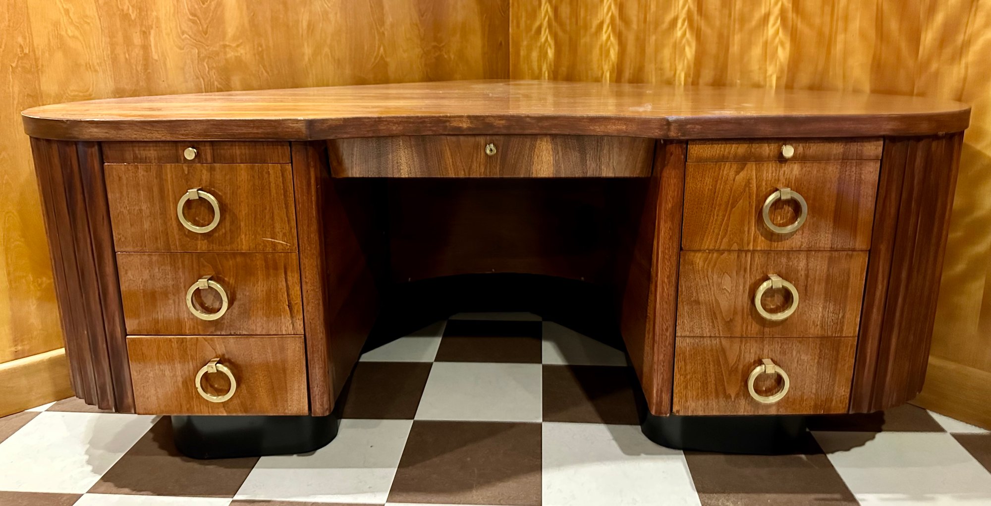 "Fletcher Aviation" Executive Desk designed by Frank Fletcher for Fletcher Aviation in the United States, circa 1940s. Dovetailed drawers. (possibly copy of Fletcher)