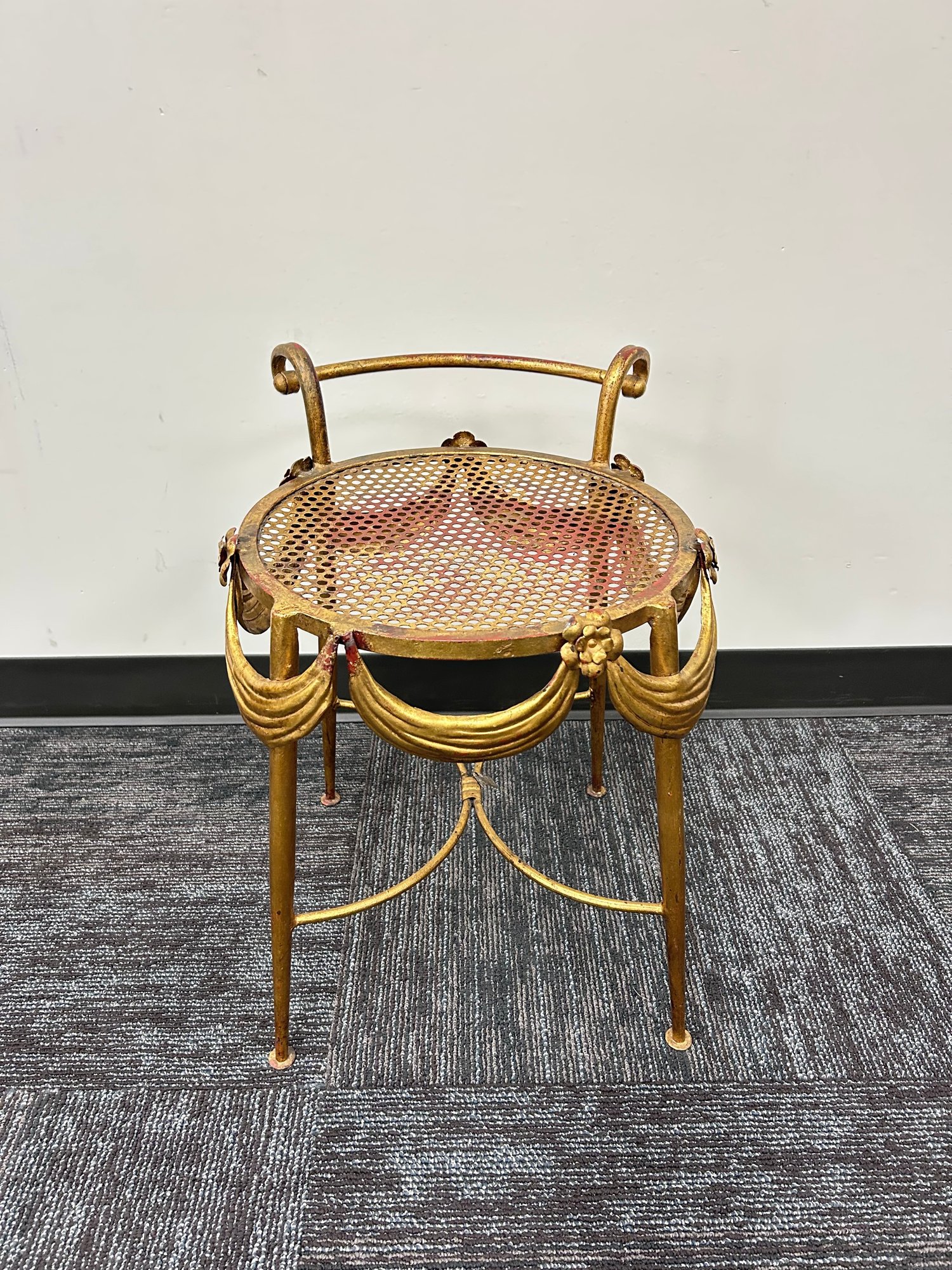 featuring a gilded wrought iron frame with rope and tassel details.