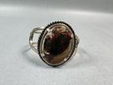 Vintage Polished Stone Hinged Cuff Bracelet