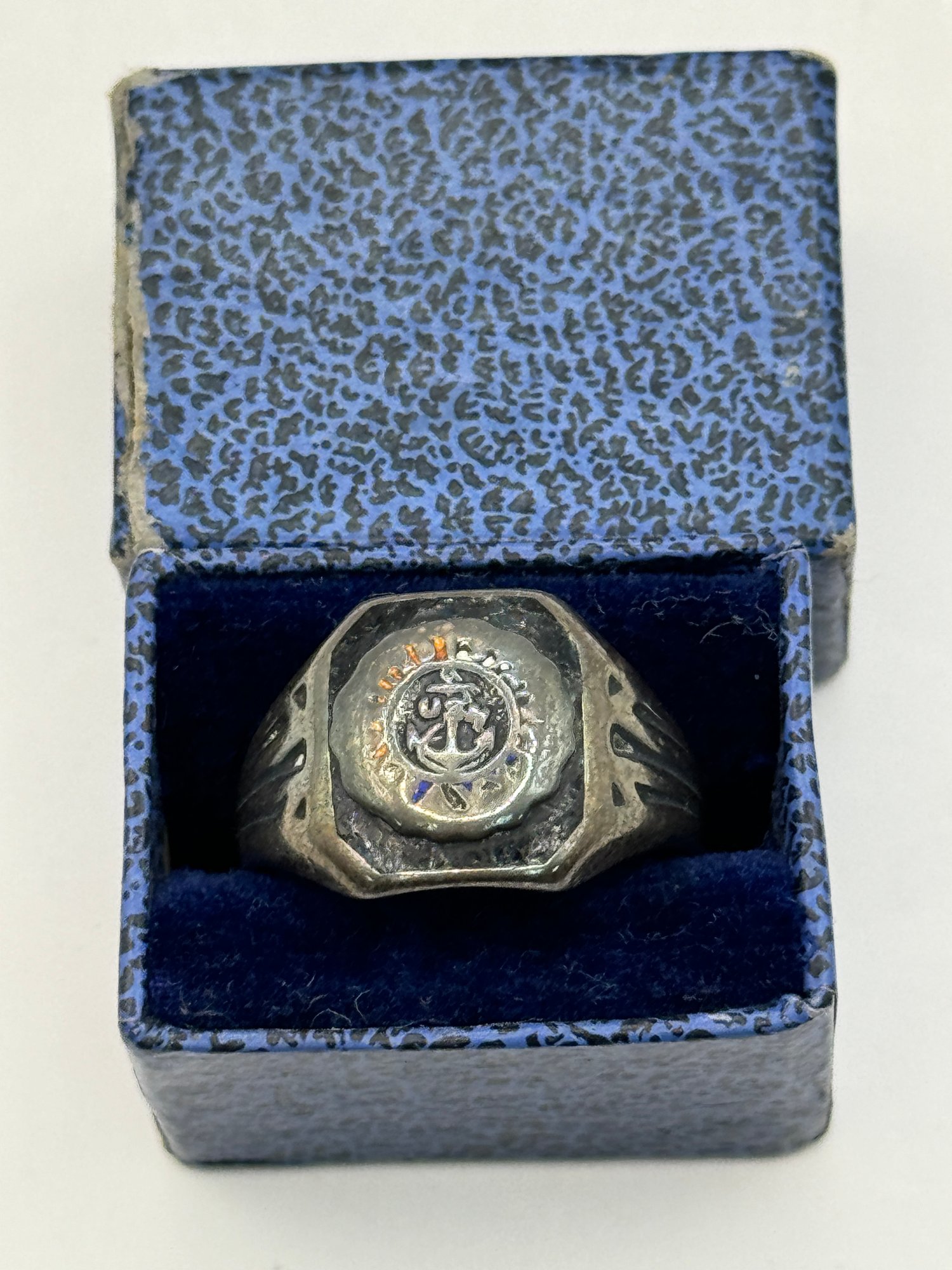 Preowned. See pictures. 3.9grams. Total wt. enamel is worn. Size 6.75.