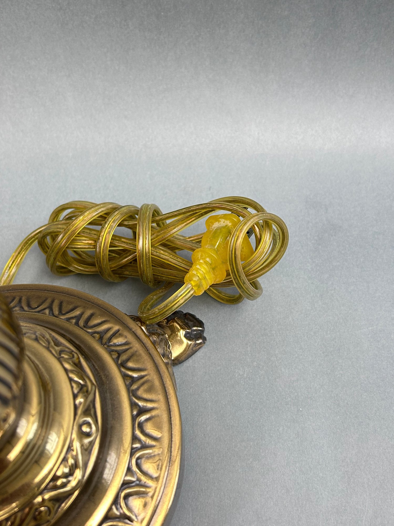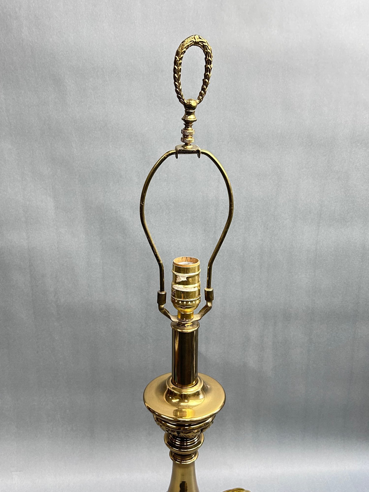 vintage Stiffel brass table lamp, often identified as a Hollywood Regency style