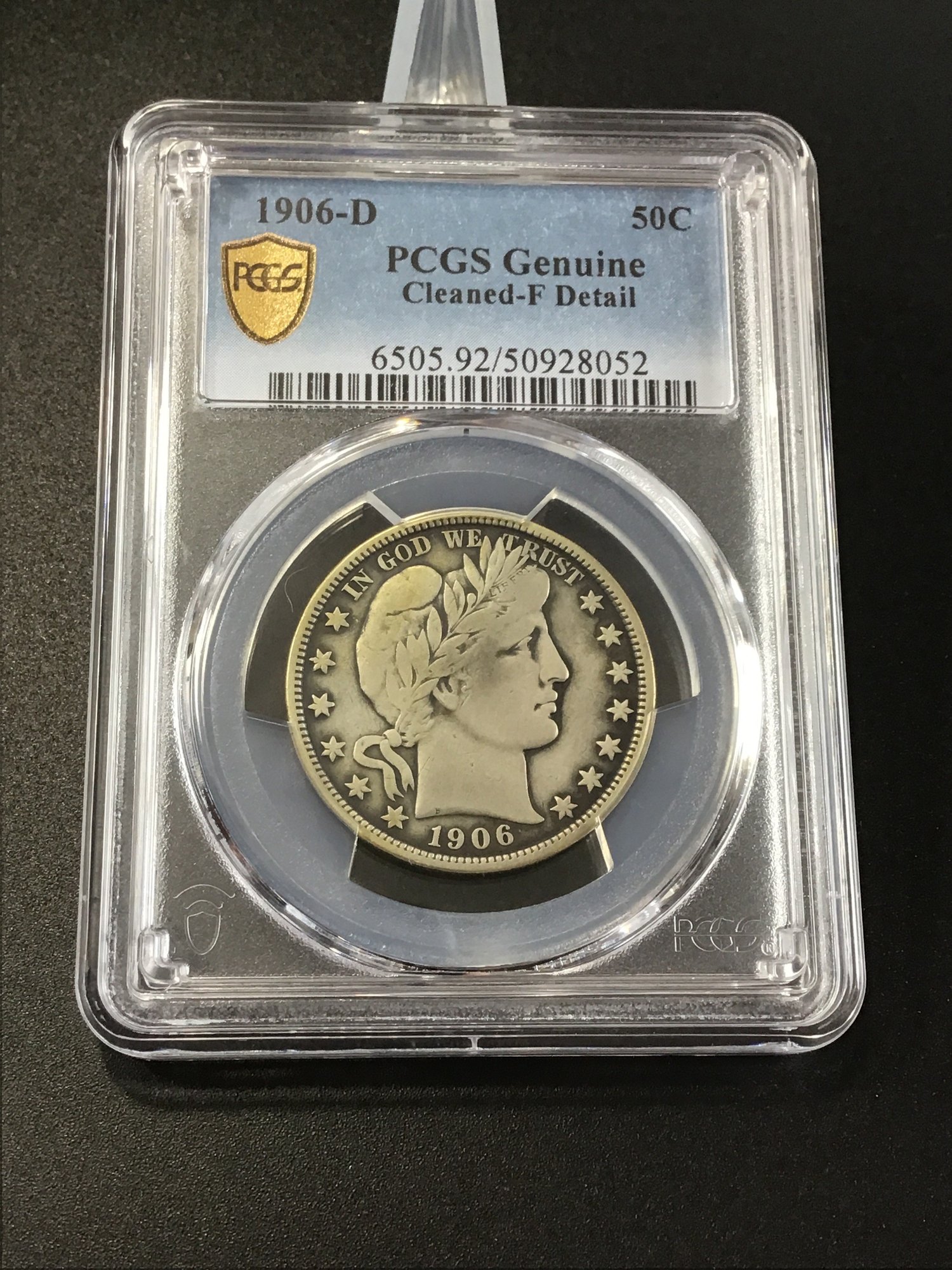 1906-D PCGS Genuine Cleaned-F Detail Barber Half Dollar