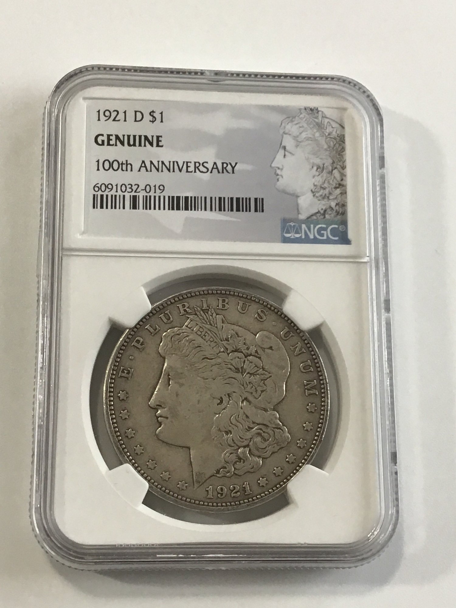1921-D NGC Genuine 100th Anniversary Morgan Silver Dollar