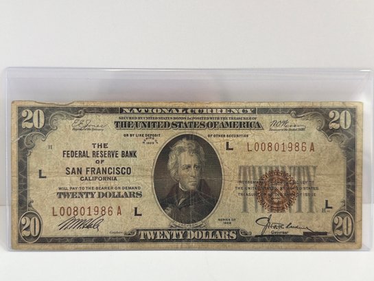 1929 San Francisco Federal Reserve $20 Banknote