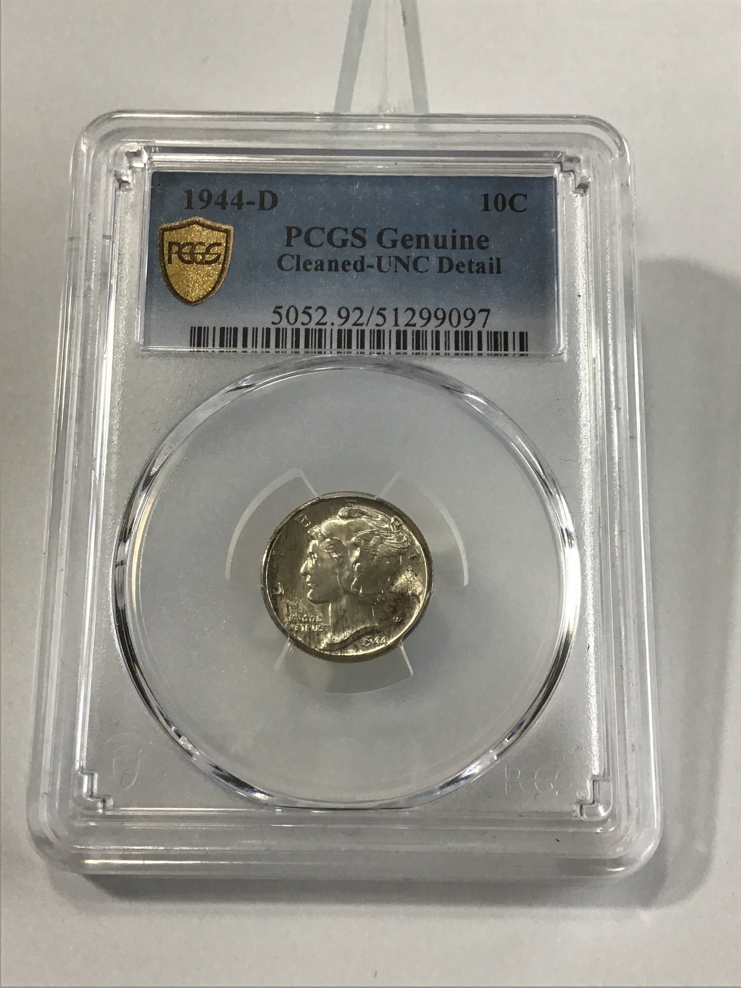 1944-D PCGS Genuine Cleaned-UNC Detail Mercury Dime