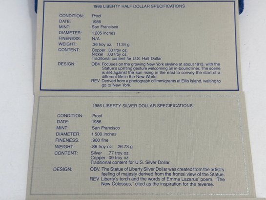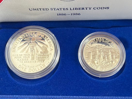 1986 Liberty Silver Dollar And Half Dollar