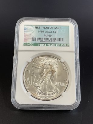 1986 NGC MS69 Silver Eagle 1 Ounce 999 Fine Silver