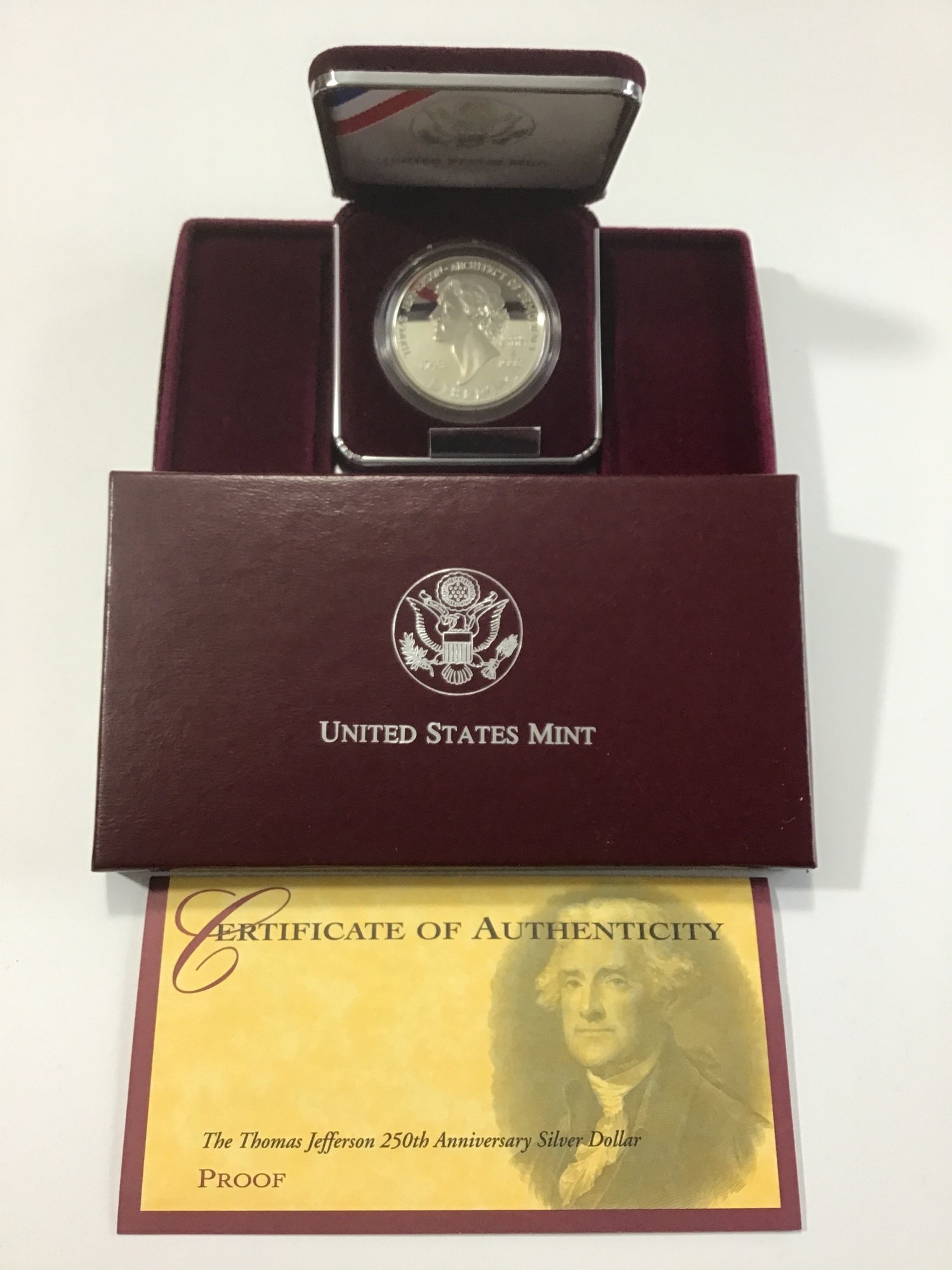 1993 Thomas Jefferson 250th Anniversary Silver Dollar