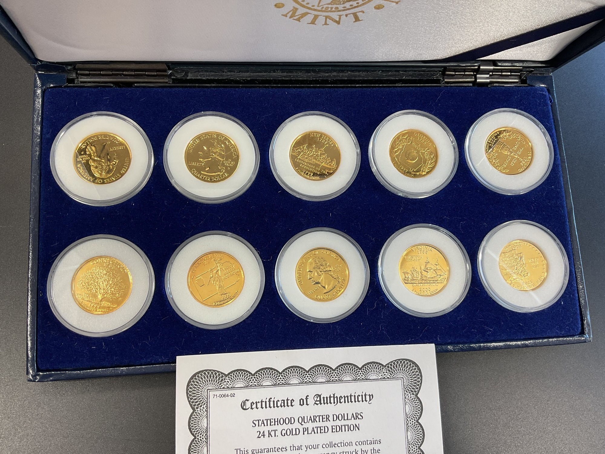 1999-2000 Statehood Quarter Dollars 24kt Gold Plated Edition