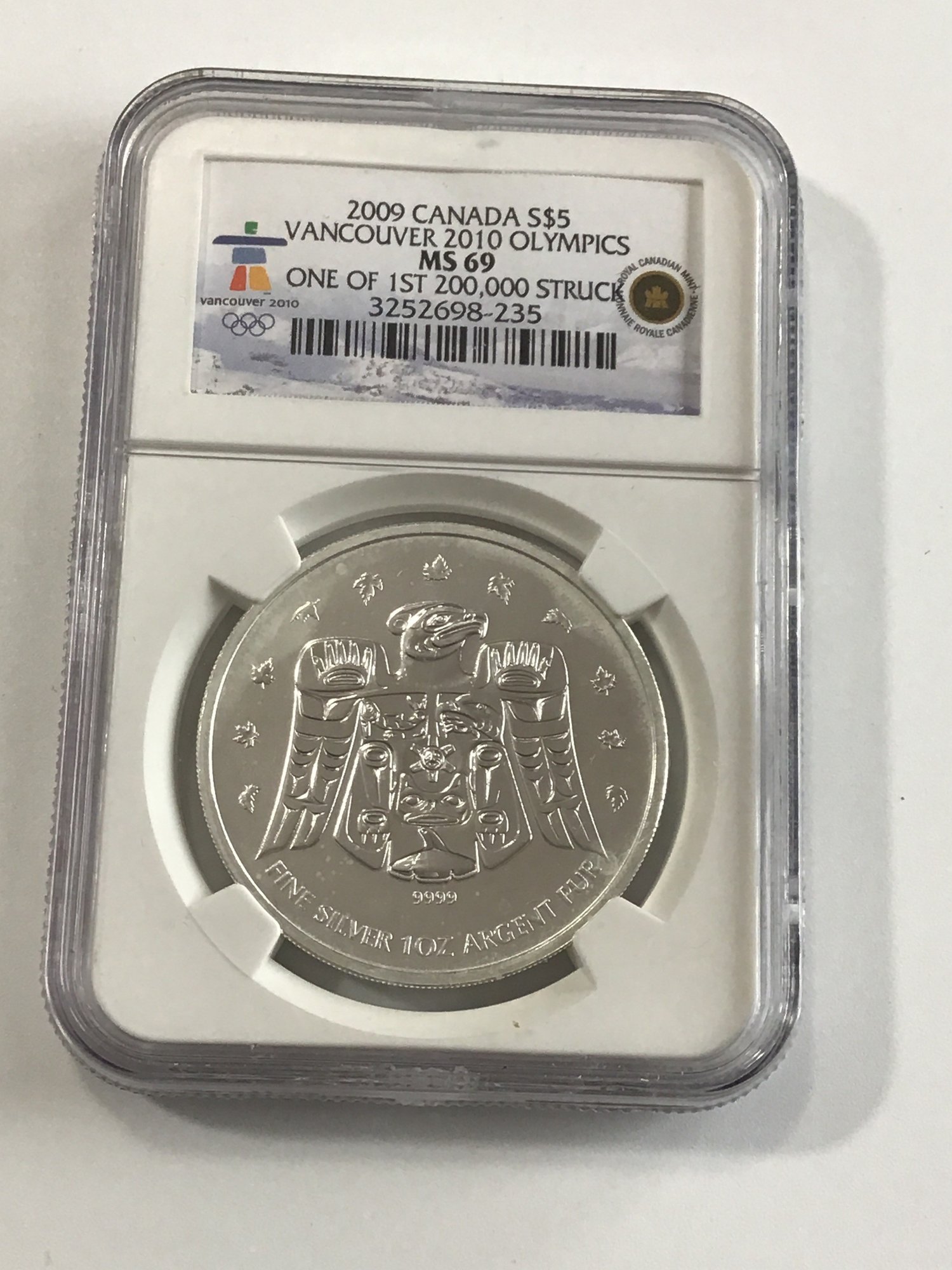 2009 NGC MS69 1oz Fine Silver Canada $5 Vancouver 2010 Olympics