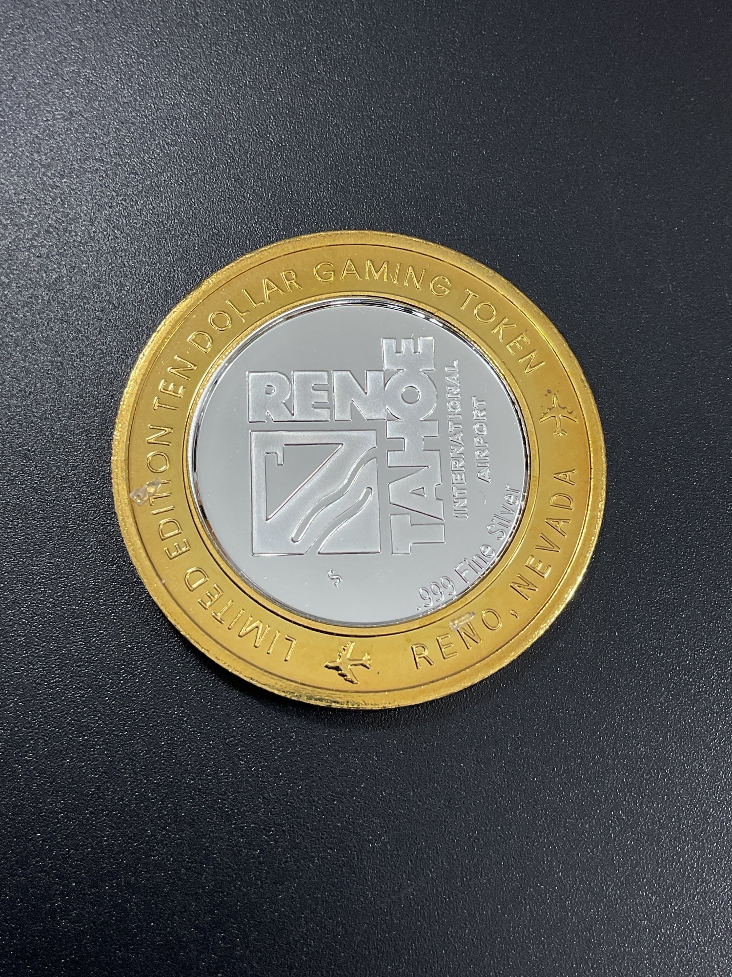 999 Fine Silver Gaming Token-RENO/TAHOE INTERNATIONAL AIRPORT
