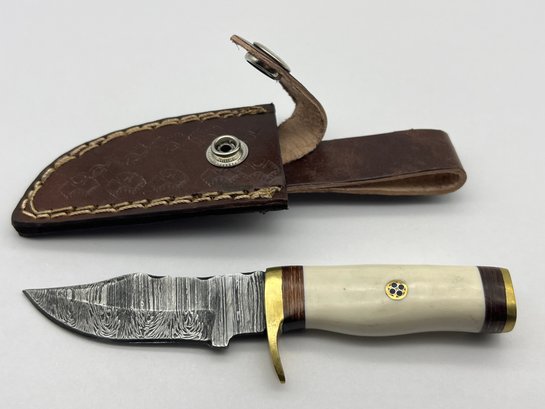NEW Damascus 6 Fixed Blade Knife W/ Leather Sheath