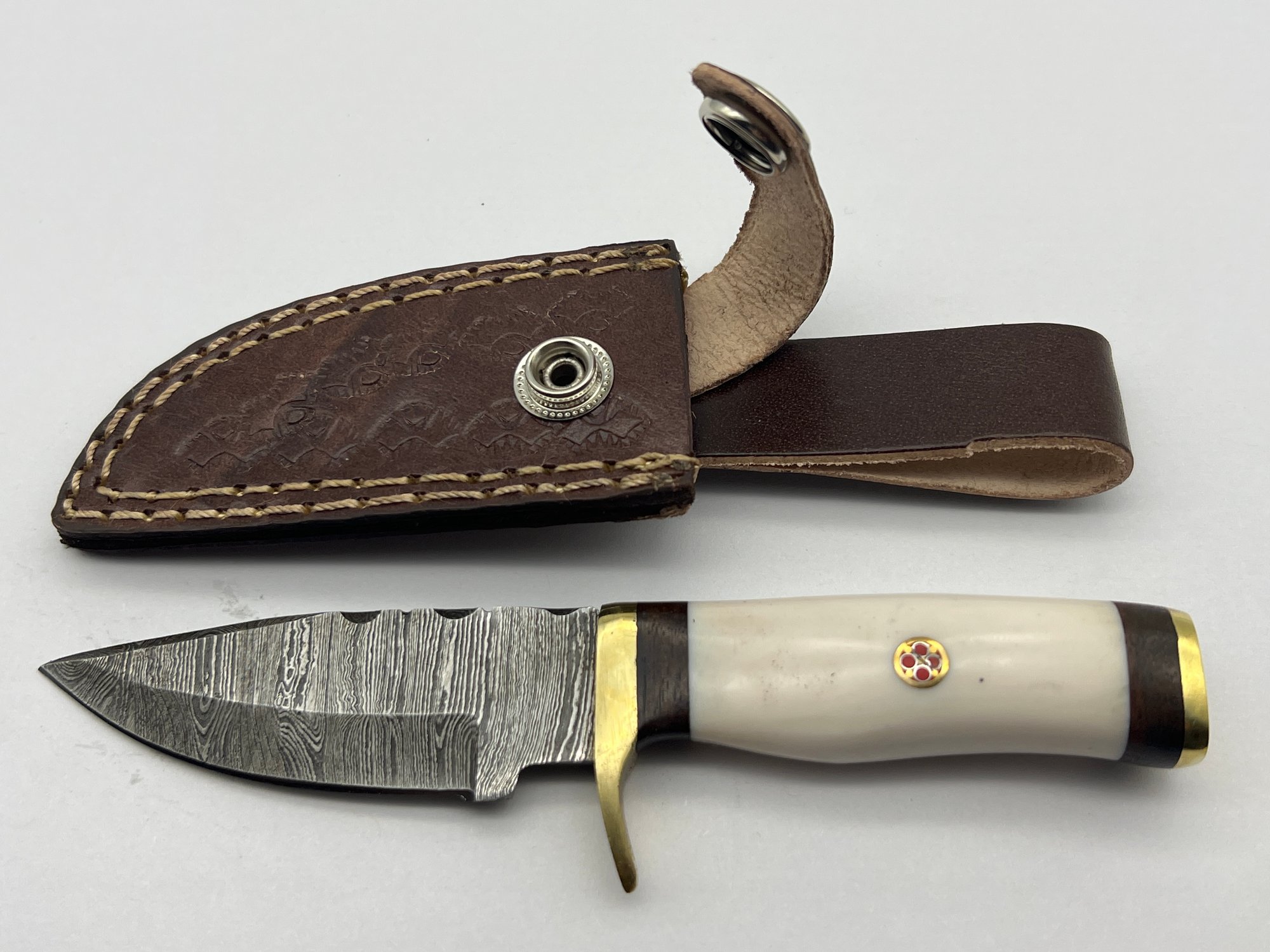 NEW Damascus 6 Fixed Blade Knife W/ Leather Sheath