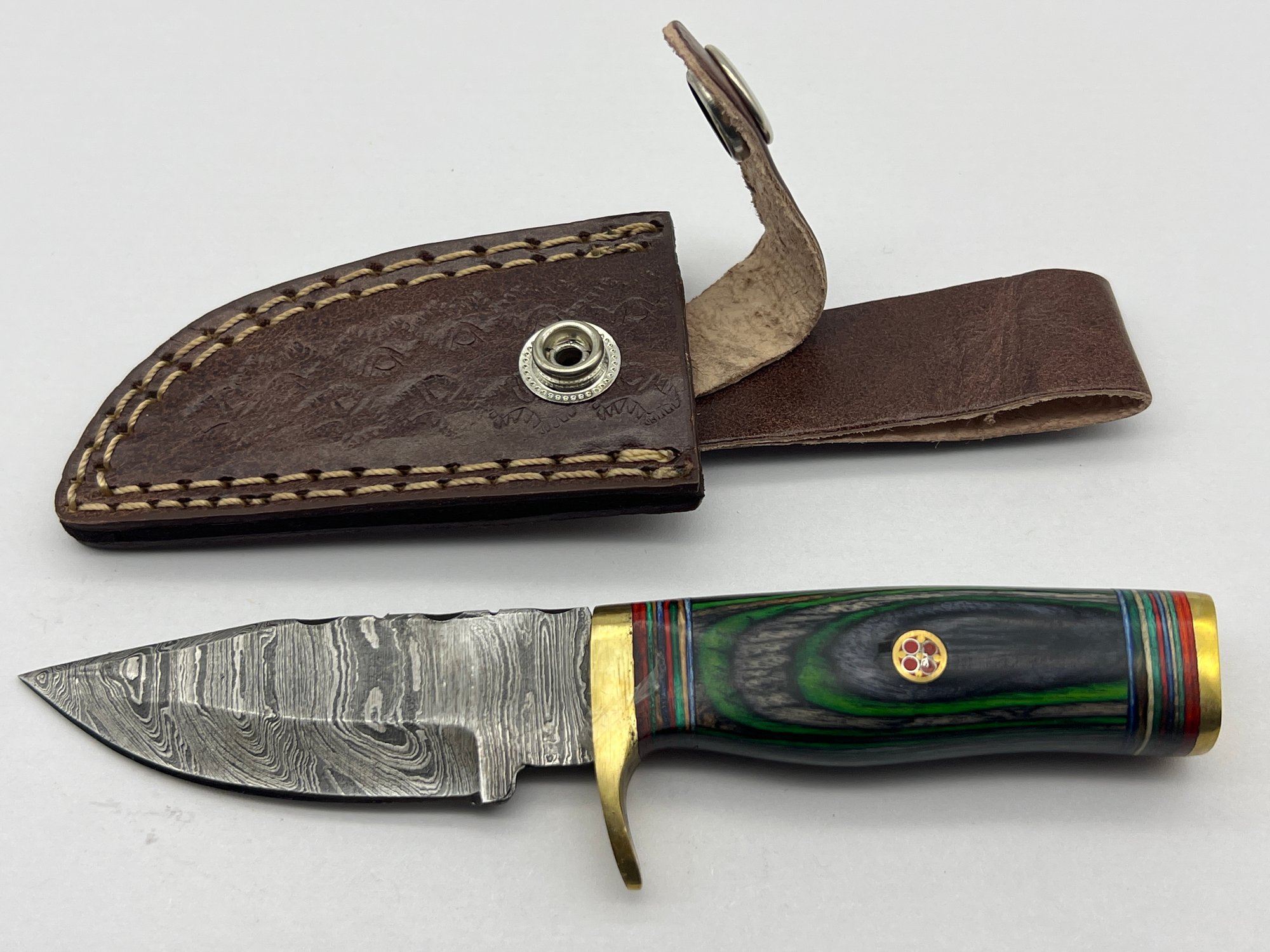 NEW Damascus 6 Fixed Blade Knife W/ Leather Sheath