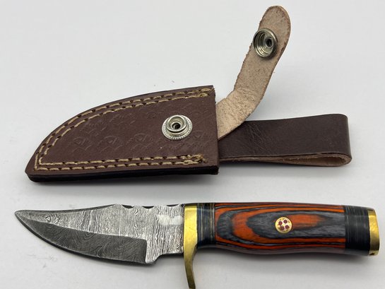NEW Damascus 6 Fixed Blade Knife W/ Leather Sheath