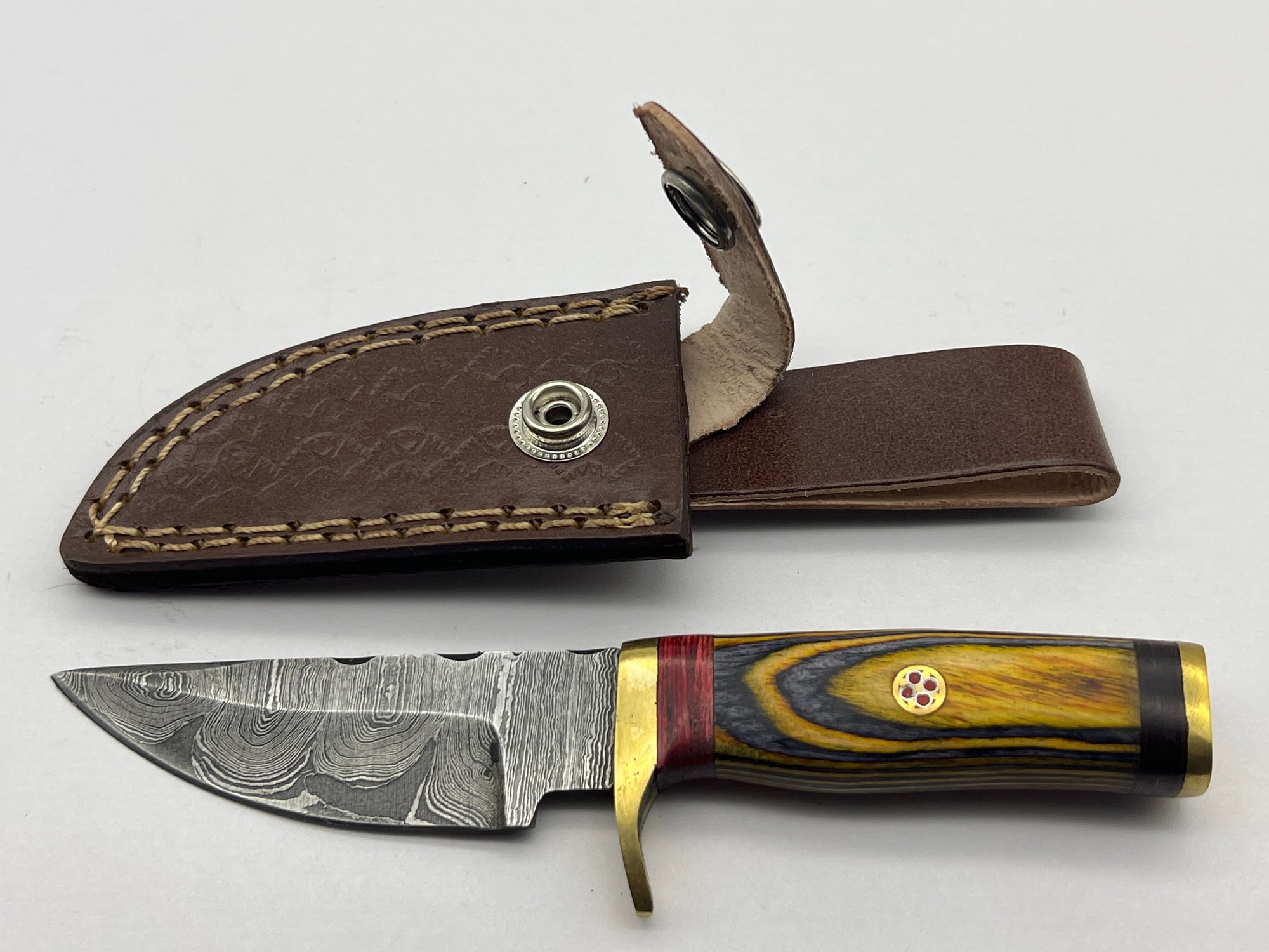 NEW Damascus 6 Fixed Blade Knife W/ Leather Sheath