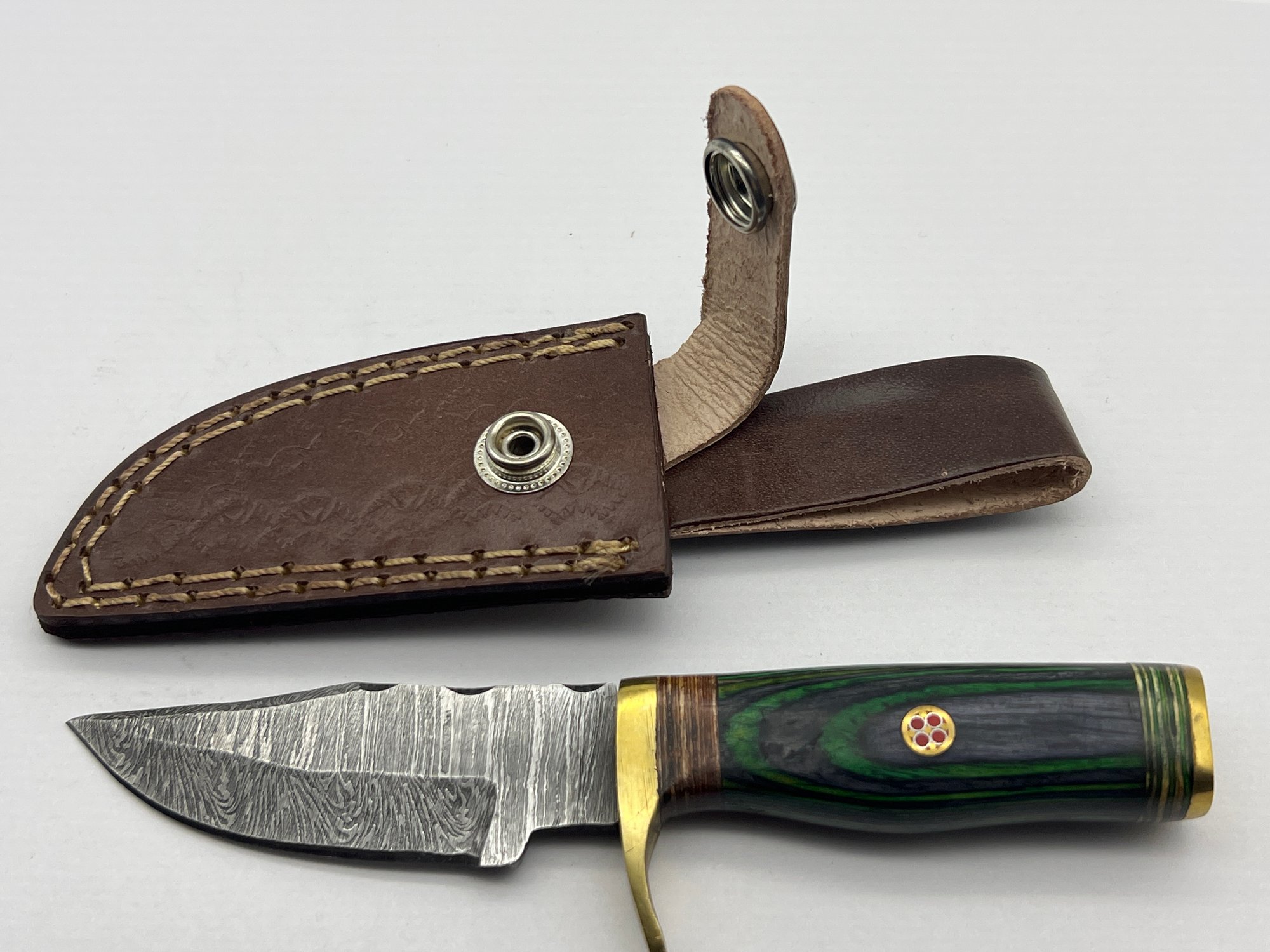 NEW Damascus 6 Fixed Blade Knife W/ Leather Sheath