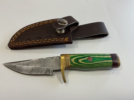 New Damascus 6 Inch Fixed Blade Knife W/ Sheath