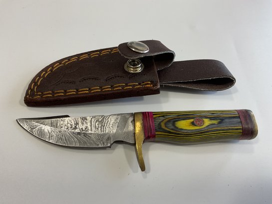 New Damascus 6 Inch Fixed Blade Knife W/ Sheath