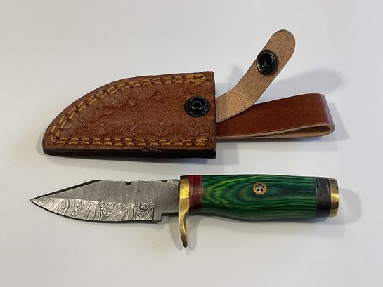 New Damascus 6 Inch Fixed Blade Knife W/ Sheath